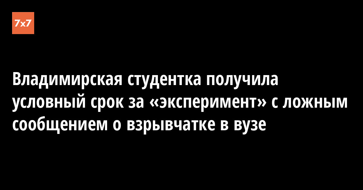 Суд приговорил студентку ВлГУ Екатерину Иванову к полутора годам лишения свободы условно за ложное сообщение о теракте. Следователи завели на девушку уголовное дело после ее поста во «ВКонтакте». Студентка решила написать статью, как ФСБ вычисляют «потенциальных преступников», и для эксперимента опубликовала сообщение о взрывчатке в институте. О приговоре сообщила пресс-служба Вязниковского городского суда.