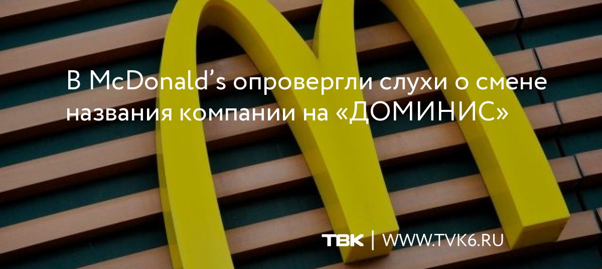 О том, что российский McDonald’s выбрал новое название «ДОМИНИС» сообщило 3 июня издание «Москва 24», сославшись на свой источник в компании. Однако в самой сети в этот же день такую новость опровергли.