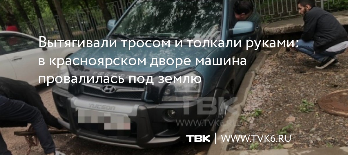 Вытягивали тросом и толкали руками: в красноярском дворе машина провалилась под землю