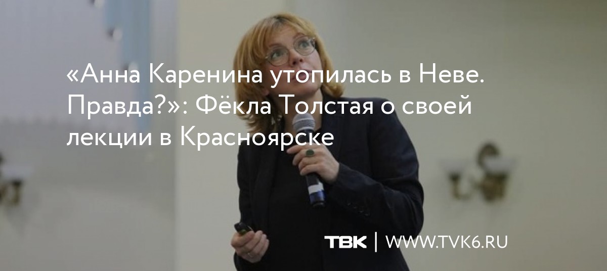 «Анна Каренина утопилась в Неве. Правда?»: Фёкла Толстая о своей лекции в Красноярске