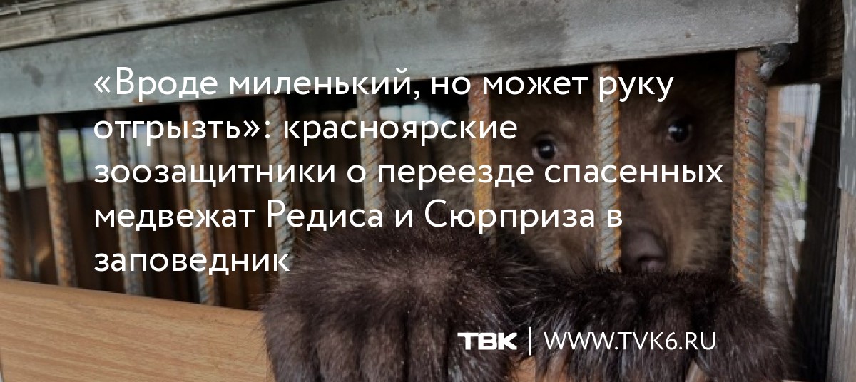 «Вроде миленький, но может руку отгрызть»: красноярские зоозащитники о переезде спасенных медвежат Редиса и Сюрприза в заповедник