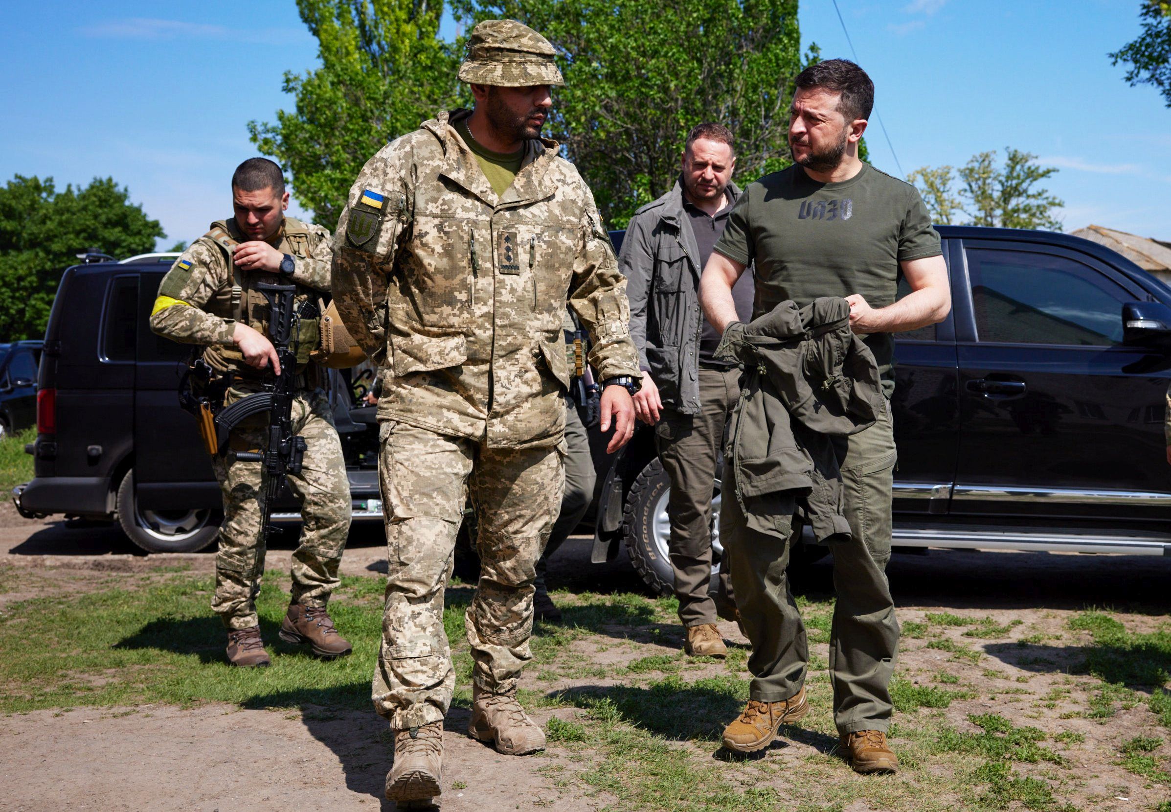 В отличие от Путина, сидящего во время интервью в комнате без окон, что заставляет предполагать, что это бункер, президент Украины Владимир Зеленский побывал в минувшие выходные в Запорожье, согласно официальным сообщениям, он также посетил передовые позиции украинских войск в районе Бахмута в Донецкой области Украины и Лисичанска в Луганской области.