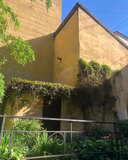«Дело в том, что мой муж работал в реставрационной мастерской. Они реставрировали „Чижика“, который на Фонтанке. [В то же время] на втором этаже у нас родился маленький мальчик. И, чтобы ему не скучно было на грязную стенку смотреть, муж его [„Чижика“] поставил на крышу», — рассказала «хозяйка» скульптуры.