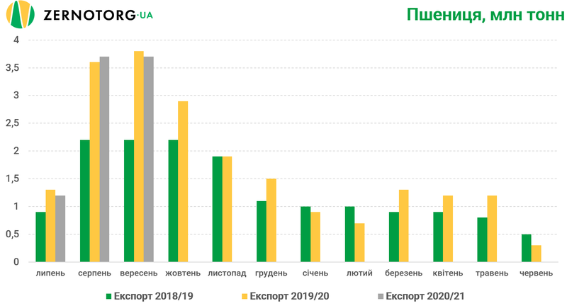С августа по ноябрь все эти годы Украина экспортировала больше полутора миллионов тонн пшеницы. И это не зерно в целом, а только пшеница.
