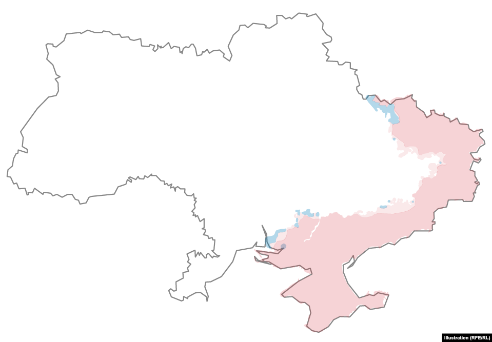 А вот карта захваченных территорий на 1 июня 2022, которую составил телеканал “Настоящее Время”.