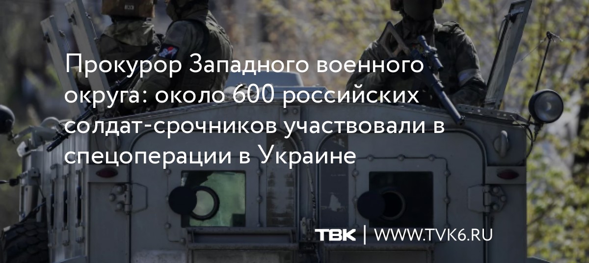 Прокурор Западного военного округа: около 600 российских солдат-срочников участвовали в спецоперации на Украине