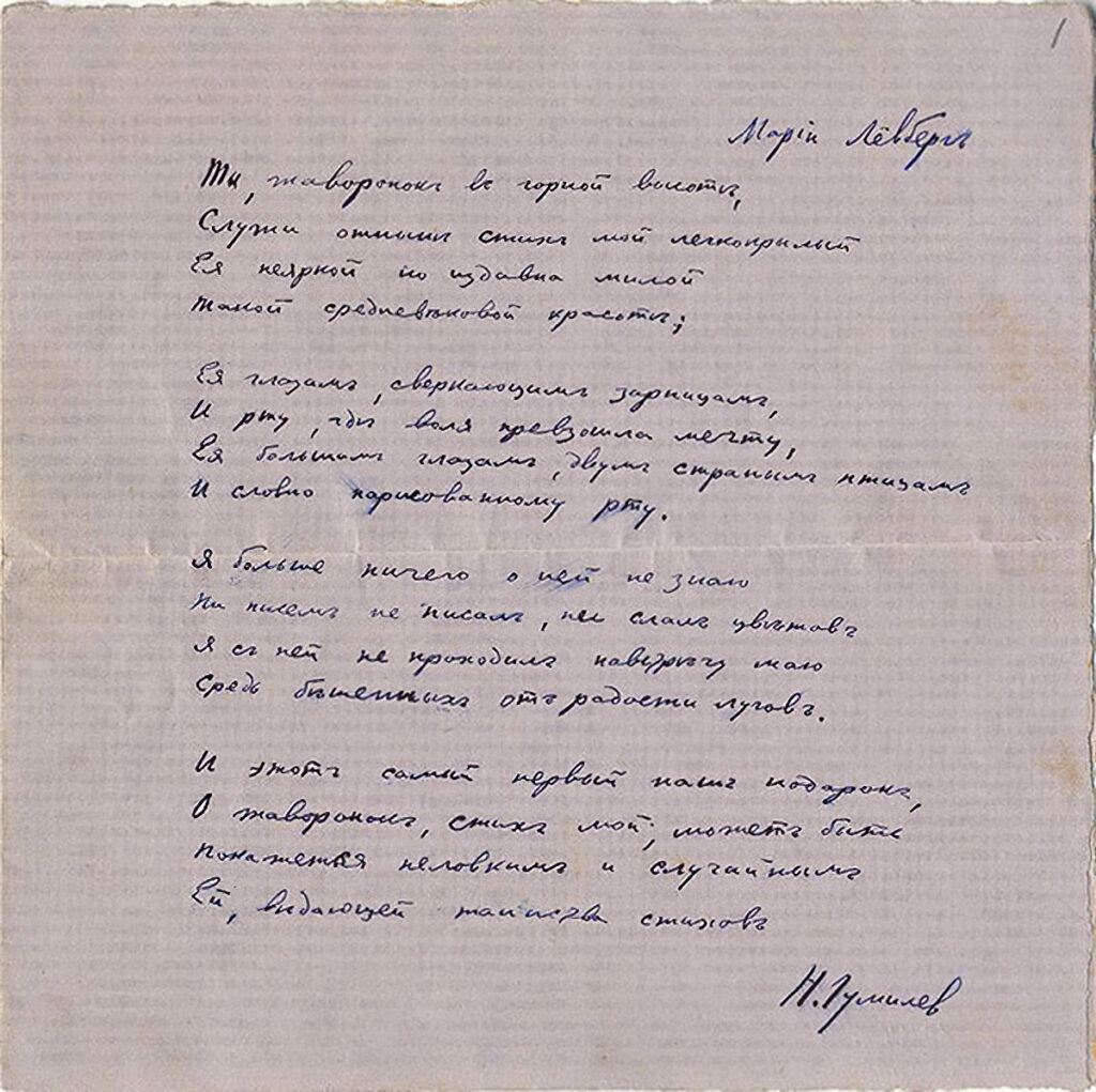 Автограф стихотворения Н. Гумилева Марии Лёвберг