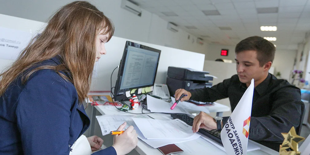 «Мы здесь не кусаемся, проходите!» — приглашает женщина в форменном рыже-голубом галстуке. Сегодня в центре занятости — семинар для новичков, впервые вставших на учет. В офисе пахнет свежим ремонтом. Стены оштукатурены в серо-оранжевый цвет. Для посетителей расставлены кресла, обтянутые голубым кожзамом. Над входом — часы с треугольным логотипом «Работа России». Безработные собираются за 20 минут до начала мероприятия.