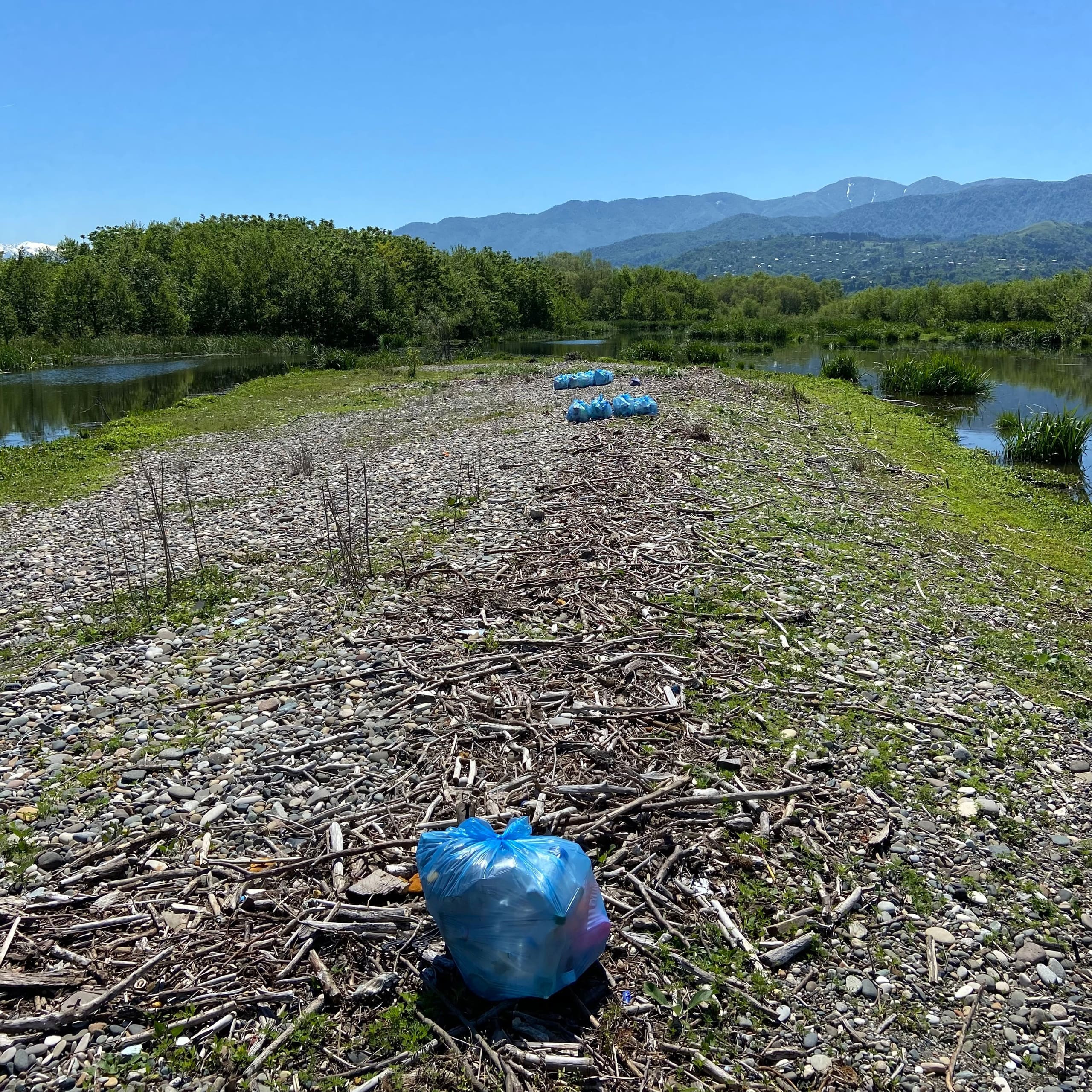 Мешки оставлены на обочине ближайшей дороги, их по договоренности заберут коммунальные службы. Суммарно на сбор и перенос мешков ушло порядка четырех часов.