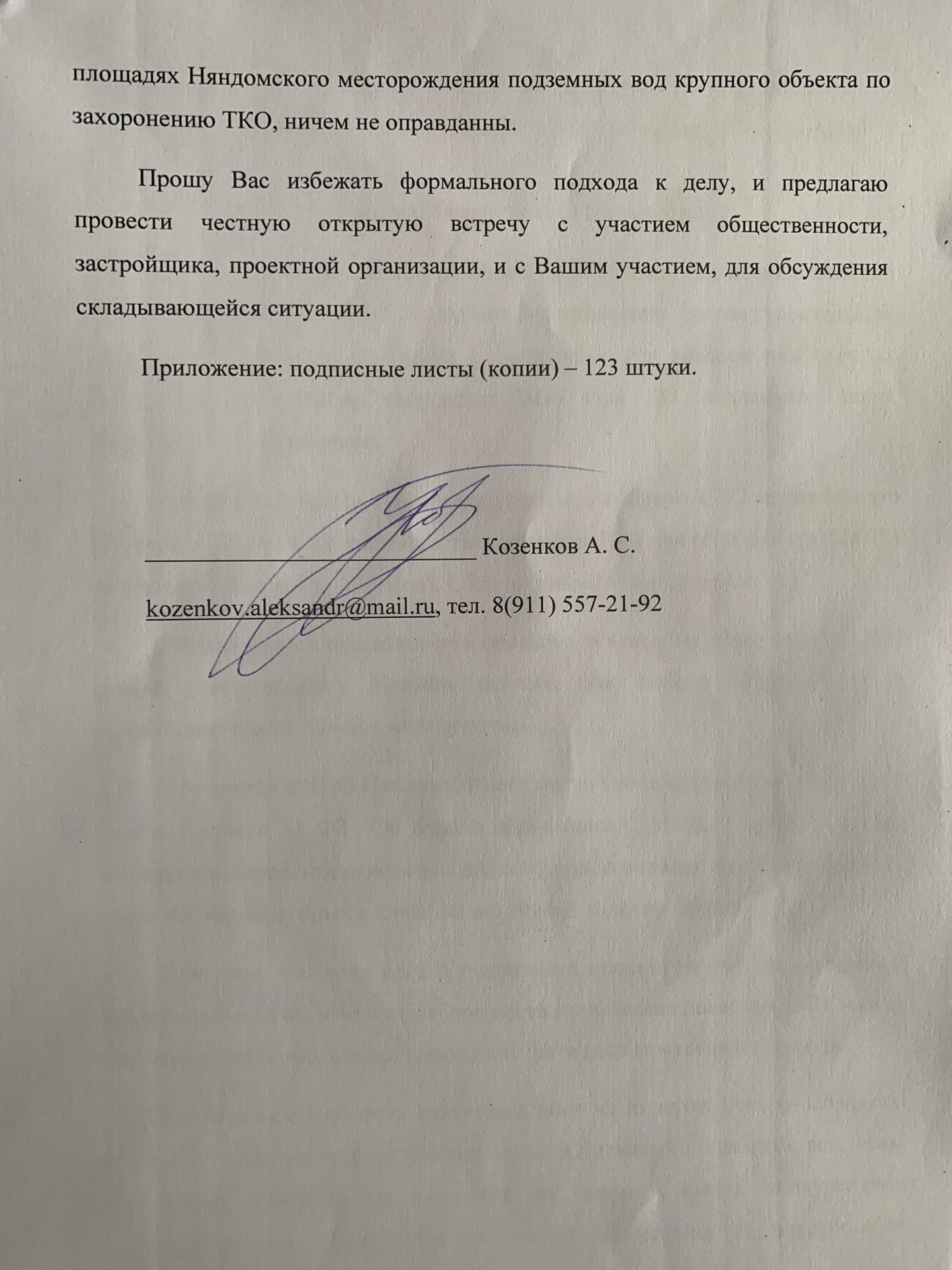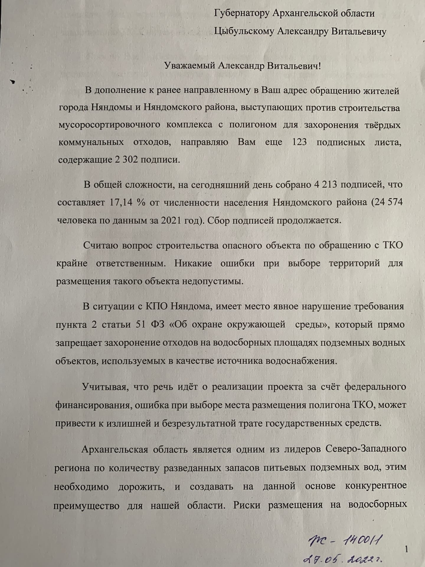 И пусть губернатор играет с гражданами в бумажный футбол – обратились к нему, а ответ на обращение от 4 мая пришел из пресловутого Министерства природных ресурсов Архангельской области. Ответ ожидаемый, из серии «приходите завтра», все будет хорошо и только на пользу жителям Няндомы и ее природе.