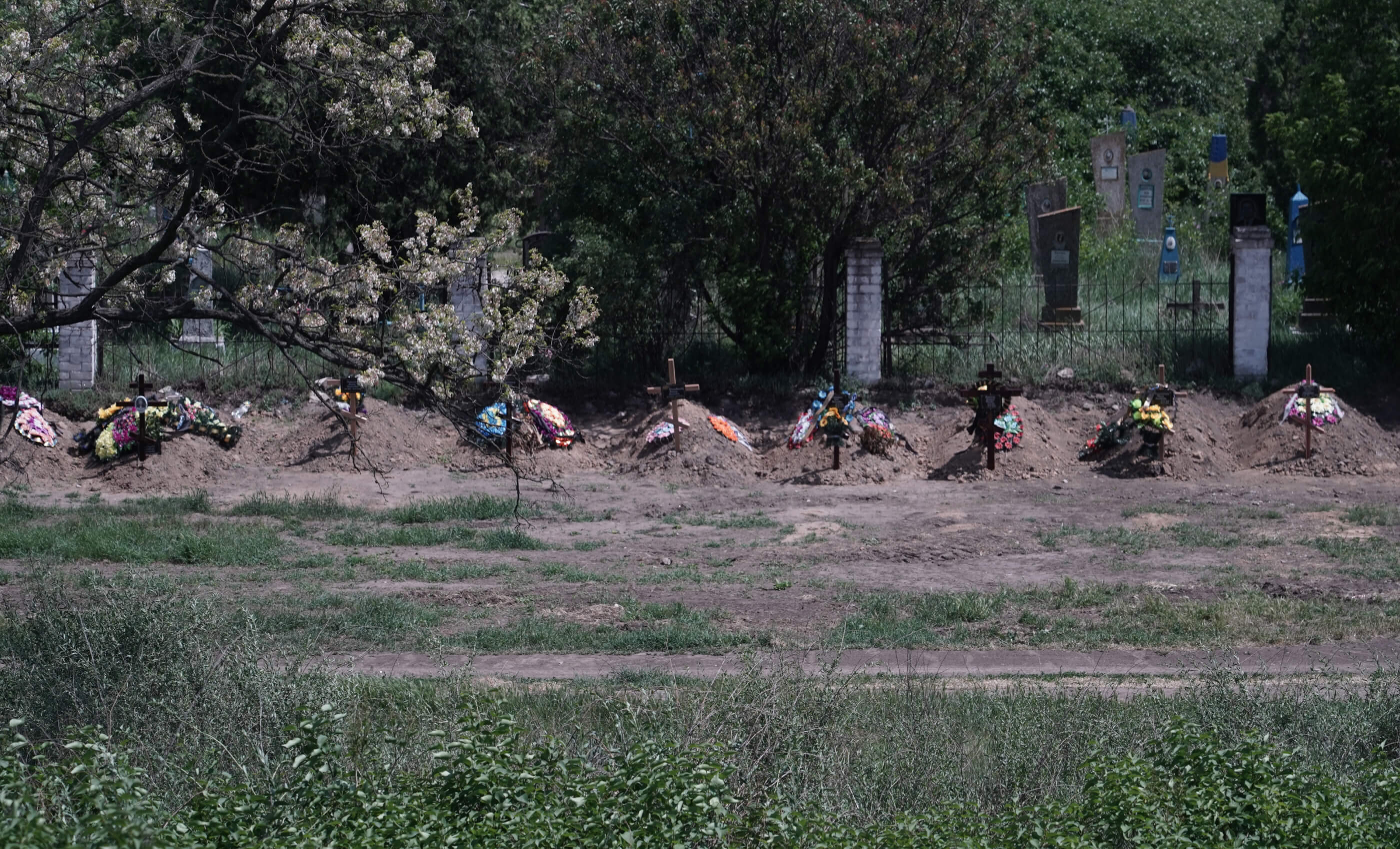 Могилы в поселке Нововоронцовка, Херсонская область. Фото: Анна Цыгима