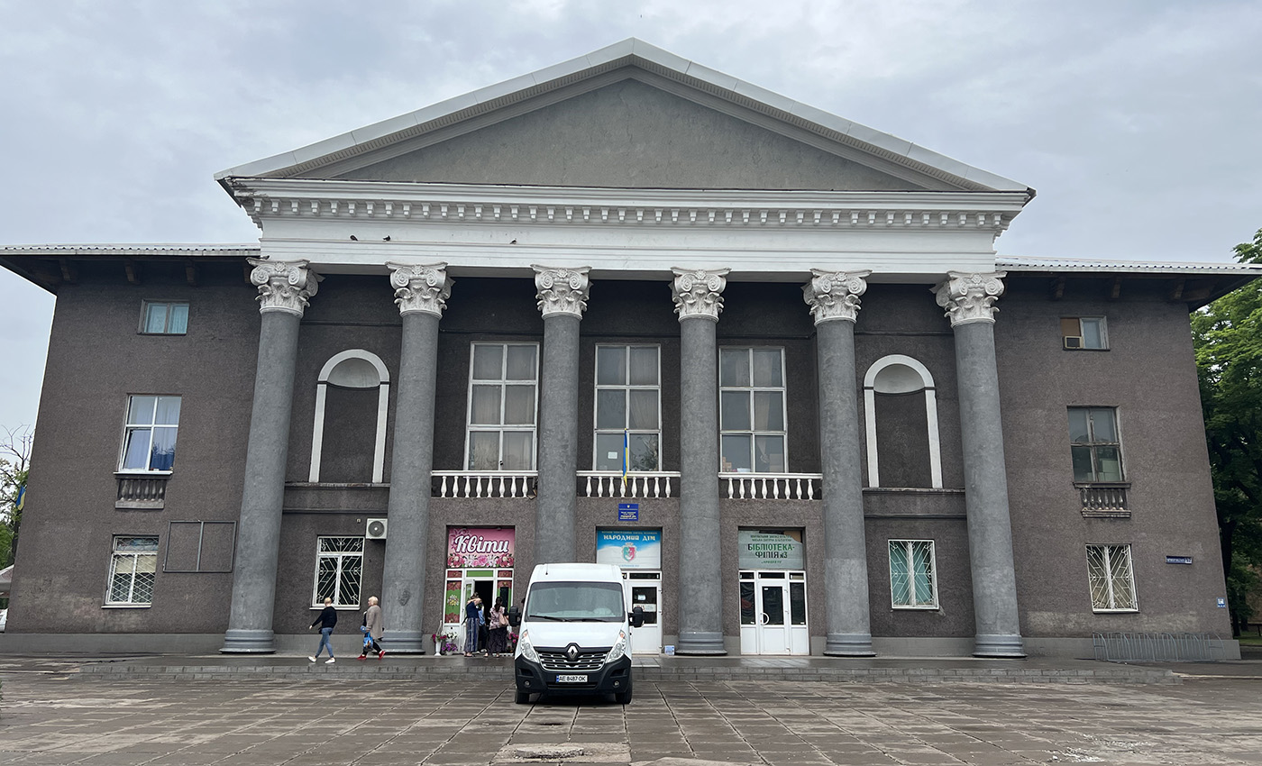 Главное место, где встречают беженцев в Кривом Роге — Народный дом, большое серое здание ДК. Внутри столы, за которыми сидят те, кто распределяет беженцев дальше — в переоборудованные под шелтеры школы. Сюда же люди приходят в поисках работы, здесь есть психологическая помощь и детская комната. В огромном зале ряды вешалок с пожертвованной одеждой, между ними ходят люди, выбирая кофты и рубашки по размеру. Волонтер рассказывает, что в апреле к ним за помощью каждый день приходило больше тысячи человек, в мае же поток упал примерно в два раза.