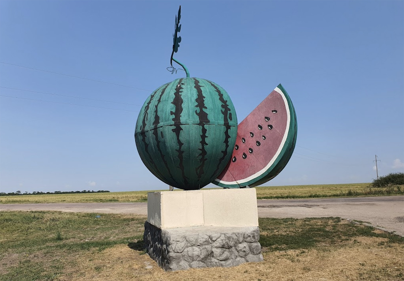 В том районе возле села Осокоровка стоит памятник арбузу. Двухметровый монумент на трассе поставили еще в конце 1980-х по заказу колхоза «Украина». На местных сайтах гордятся тем, что это самый большой памятник арбузу в стране. Недалеко от него — бетонная автобусная остановка. Сейчас «на ""» стоит основной блокпост российских военных в этом районе, через него осуществляется въезд на оккупированную территорию.