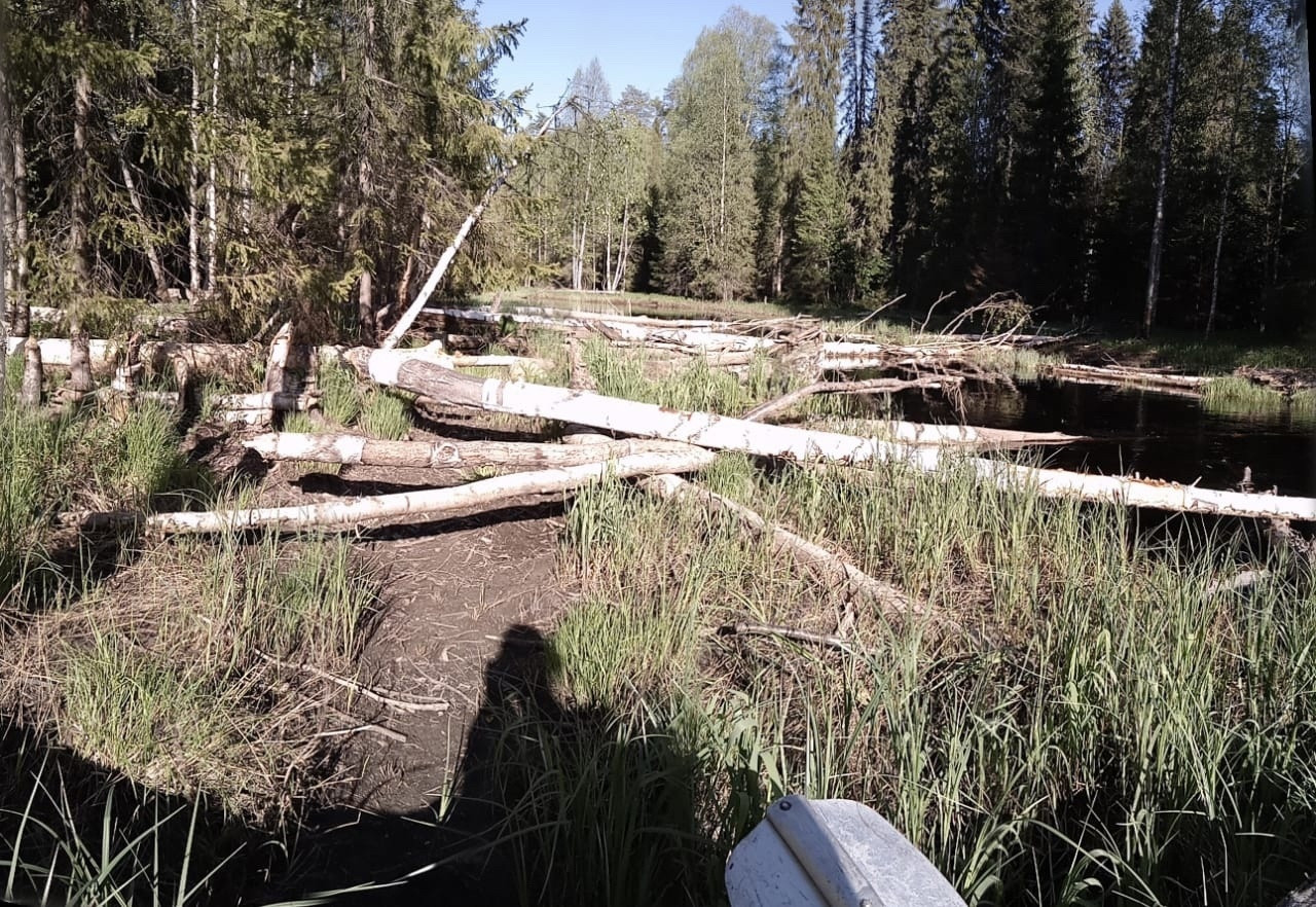 Ребята закончили маршрут вчера, немного не дошли до моста на Древлянку. Сильно порвалась на бревнах и камнях байдарка – в ней несколько дыр. Самые большие завалы вдоль коттеджного поселка, который построен перед агростанцией. Это всего в 2 км от бетонного моста с Кукковки на Древлянку. Там сейчас мелко, и лес просто лежит в русле. Мусора городского на реке от озера до этого моста нет. Есть несколько завалов, сделанных бобрами там, где поуже река. У газопроводной трубы завала нет, один ниже трубы, другой выше. То есть при подъеме воды может быть затор под трубой, и тогда «город подумал: ученья идут». Я иронизирую, – пишет Галина Степанова. - У меня еще группа собирается на байдарках пройти Лососинку от плотины до города после дождей, когда воды прибудет.