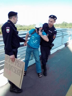 В Красноярске задержали пикетчика, рисовавшего плакат в поддержку политзаключенных