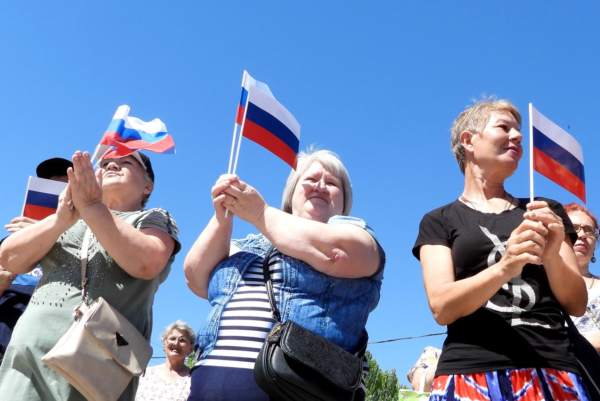 Как утверждает ТАСС, в Потемкинском сквере собрались «сотни горожан» — там выступил ансамбль песни и пляски Южного военного округа. А на площади кинотеатра «Юбилейный» состоялся концерт «Русского радио», передает РИА Новости.