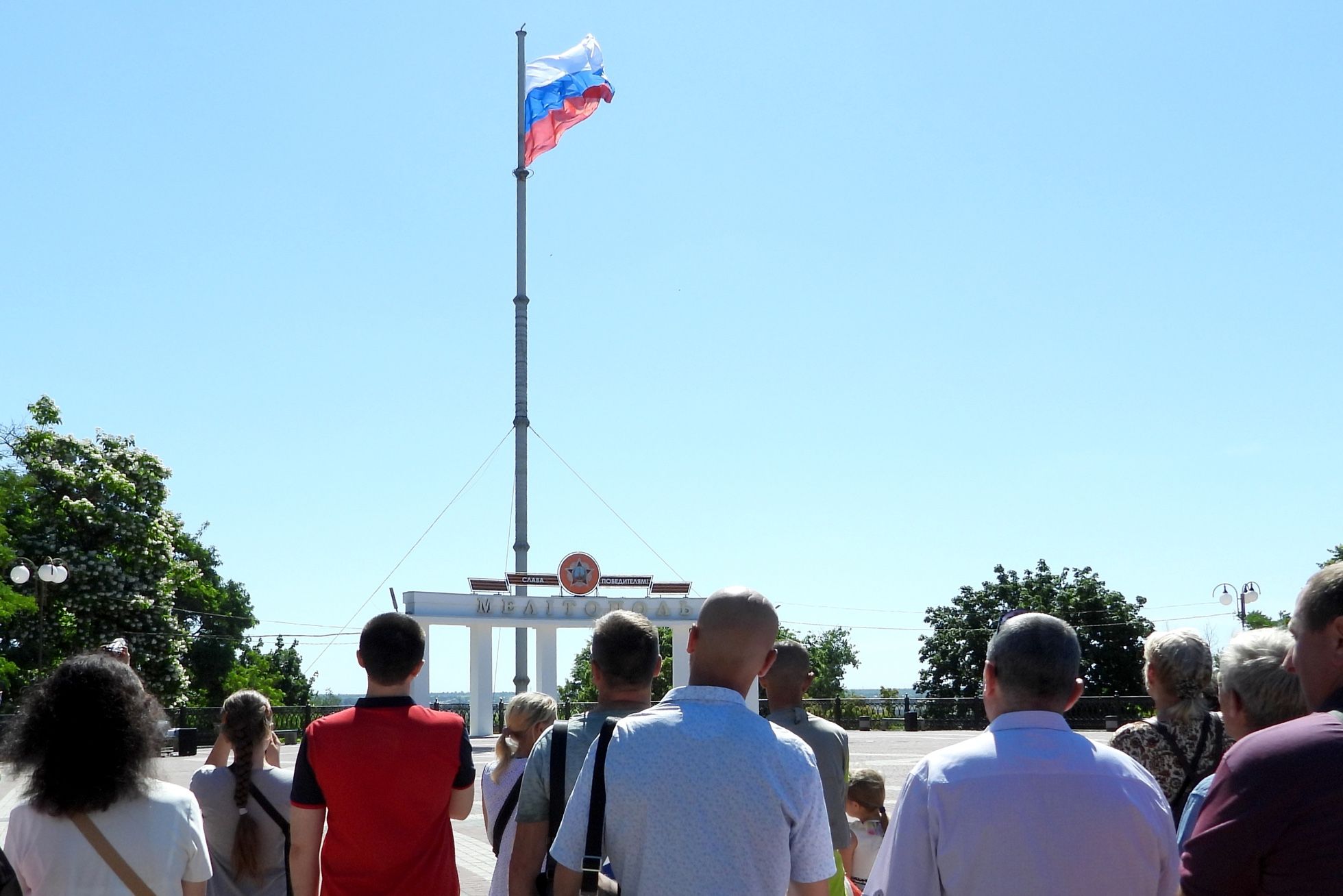 В Мелитополе (на фото ниже) вручали российские паспорта, танцевали и поднимали российский триколор. Как утверждают украинские СМИ, в городе также собираются выступать певец Денис Майданов и актер Дмитрий Певцов.