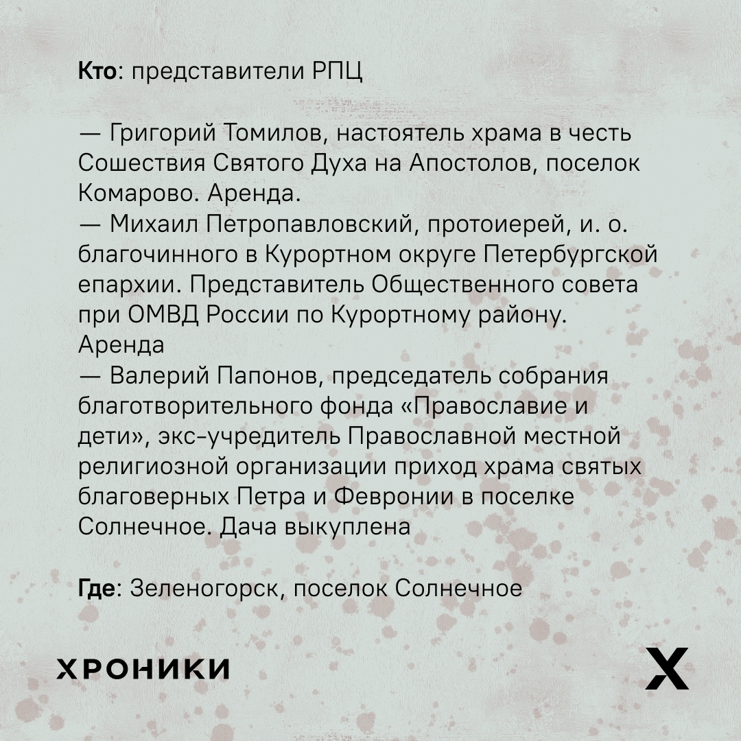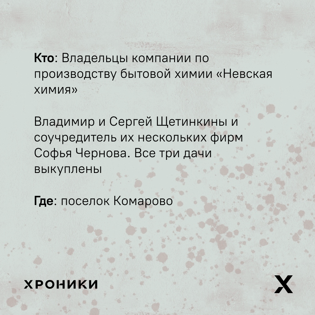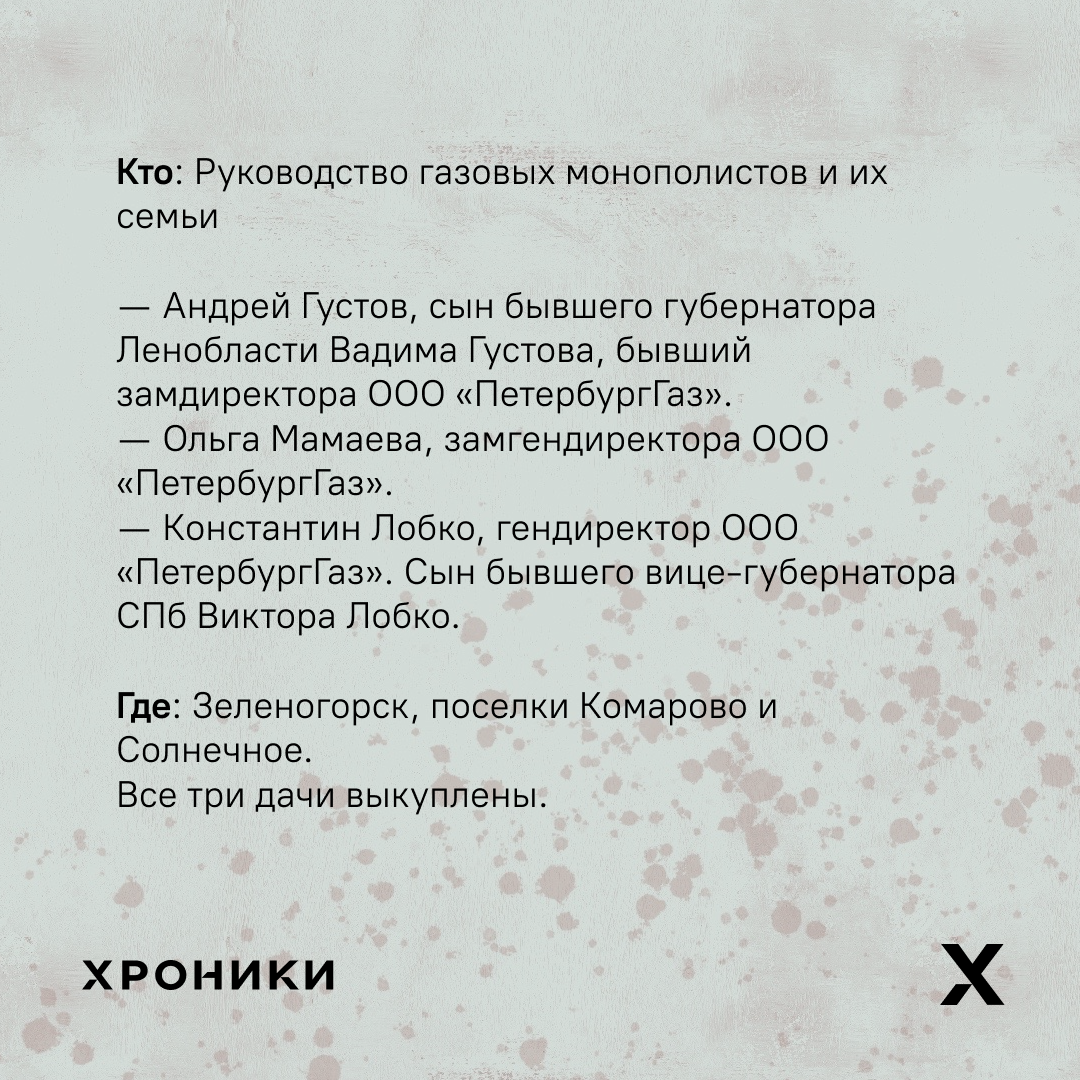 Совсем недавно «Хроники» рассказывали о другом ярком случае — бывший глава Ленгорисполкома Владимир Ходырев, на днях ставший почетным гражданином Петербурга, как выяснилось, тоже является обладателем неплохого угодья в Солнечном — ещё в 2008 году сданного в аренду аж на 39 лет, а в 2021 году благополучно выкупленного за смешные 2,7 млн рублей. Ещё смешнее то, как Ходырев прокомментировал приобретение: «Сколько назначили — столько я и платил», добавив, что ему ещё зачли ранее выплаченную аренду. Ну конечно, кто ж откажется, если добрые люди госсобственность за бесценок предлагают?