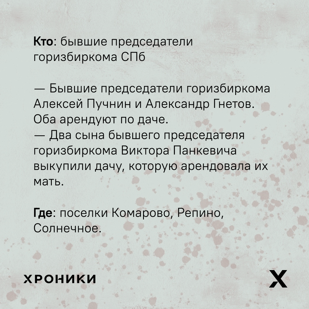 В общем, имён столько, что проще, как нам кажется, показать всё на карте. Аферы с землей в Курортном районе — вовсе не открытие, о них писали неоднократно, но именно так становятся лучше видны масштабы происходящего. Даже интересно, сколько таких арендованных дач через год-другой обретут полноценного собственника.