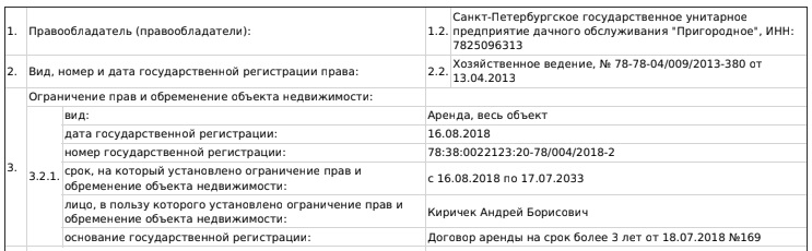 Сразу несколько дач на одинаковый срок — 2018–2033 годы — арендуют бизнес-партнеры семьи директора «Пригородного» Николая Подзигуна.