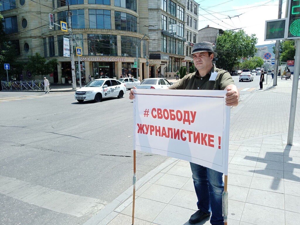 В Махачкале прошли одиночные пикеты против цензуры в СМИ. Протестующие также потребовали освободить обвиняемого в финансировании терроризма журналиста Абдулмумина Гаджиева.