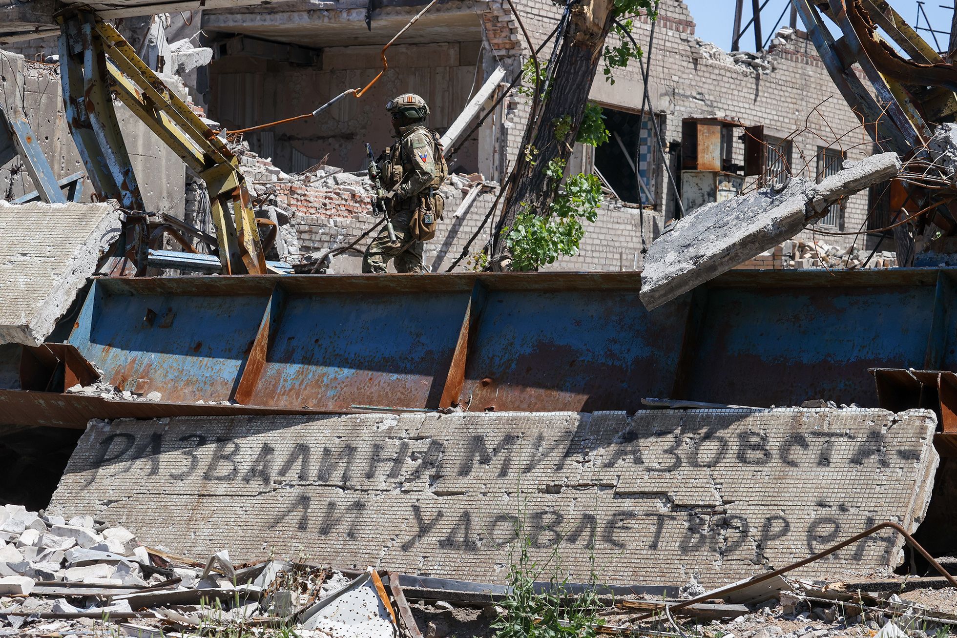 Минобороны РФ организовало пресс-тур для российских и иностранных журналистов, в ходе которого им, в частности, показали территорию завода «Азовсталь», которую украинские военные защищали несколько недель после того, как остальную часть города захватили войска РФ. Вот два снимка оттуда.