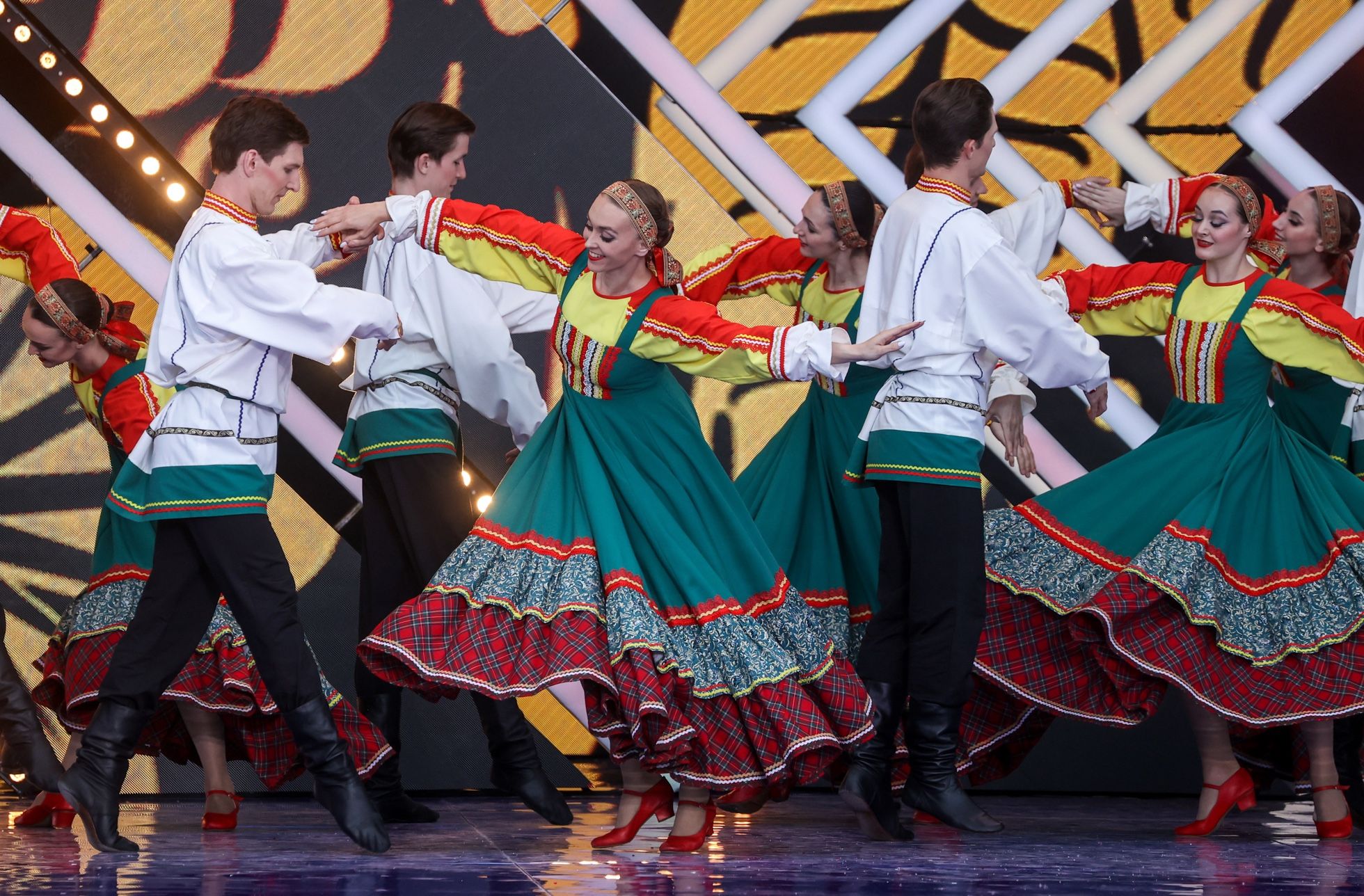 «Наши войска разгромили крымского хана. Среднее и Нижнее Поволжье остались с Москвой», — говорят на сцене ведущие перед тем, как объявить выступление Димы Билана. Толпа радостно выкрикивает имя певца. Несколько человек начинают танцевать. Следующим на сцену выходит Григорий Лепс. «Я счастливый как никто», — поют собравшиеся на площади.