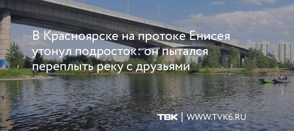 Как сообщили в краевом СК, компания из 9 подростков отдыхала на острове Татышев. Трое из них решили переплыть протоку Енисея с одного берега на другой. Во время пересечения водоема, у одного из мальчиков кончились силы.