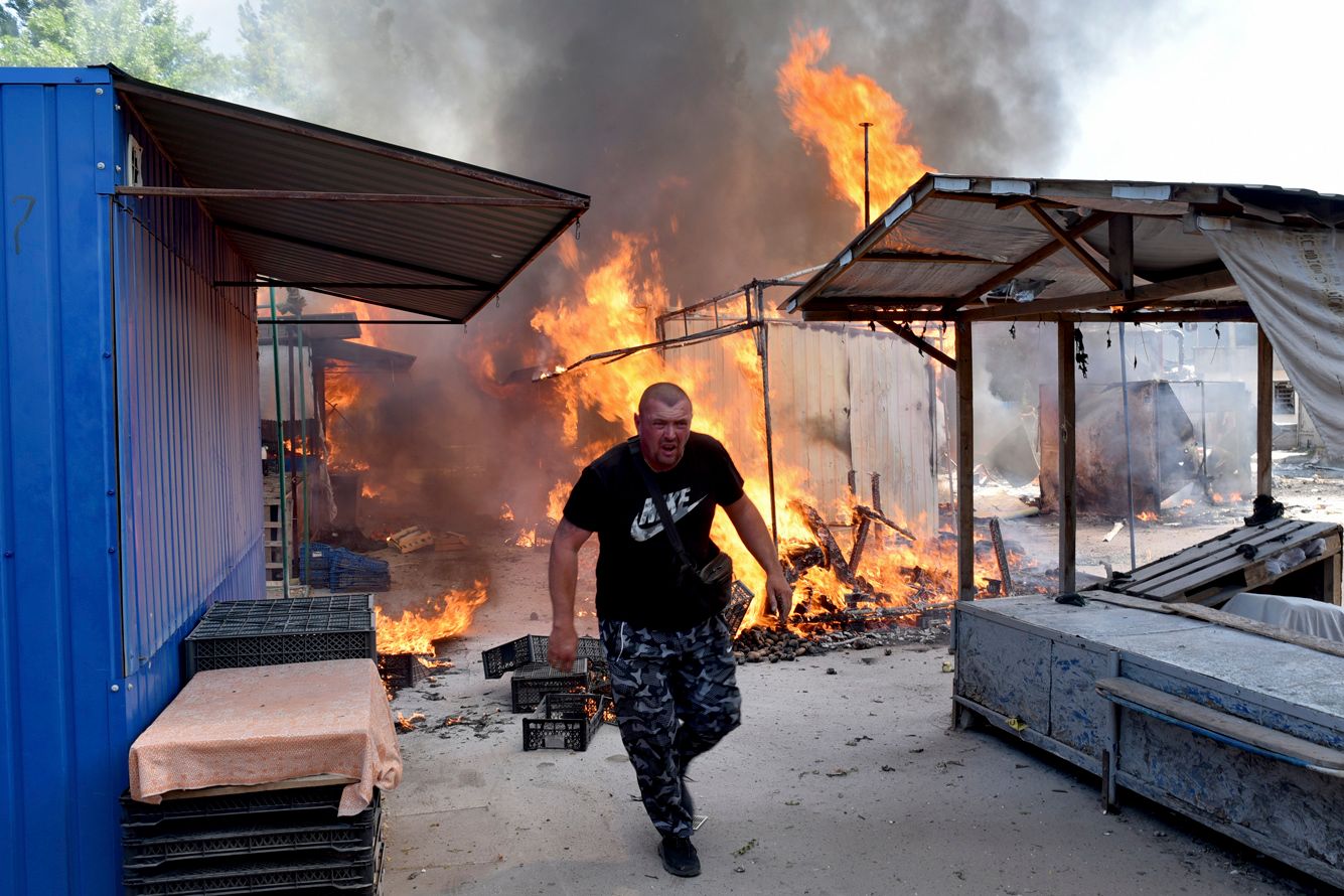 13 июня Минобороны Украины заявило, что российские войска заняли центр Северодонецка (Луганская область). Корреспонденты российских государственных агентств РИА Новости и ТАСС сообщили, что в Донецке в результате обстрела загорелся роддом. Представители ДНР добавили, что был обстрелян и городской рынок — погибли по меньшей мере три человека (в том числе ребенок), четверо пострадали. В ВСУ эту информацию не прокомментировали. Глава украинской полиции Игорь Клименко сообщил о расследовании гибели более чем 12 тысяч мирных жителей. «Медуза» собрала главные фотографии этого дня.
