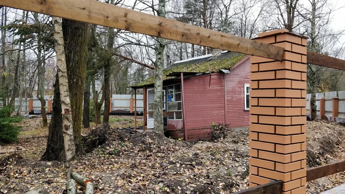 Фактически эти участки с момента аренды домиков существовали как единый имущественный комплекс, а сами «курятнички» никого не интересовали и были снесены сразу после оформления прав собственности на них. Еще не были выкуплены дома, не говоря о приватизации участков, а уже вовсю развернулась стройка: оба участка обносились одним капитальным кирпичным забором на бетонной основе, возводились немаленький коттедж и подсобные строения, в которых можно узнать гараж и нечто похожее на домик привратника.