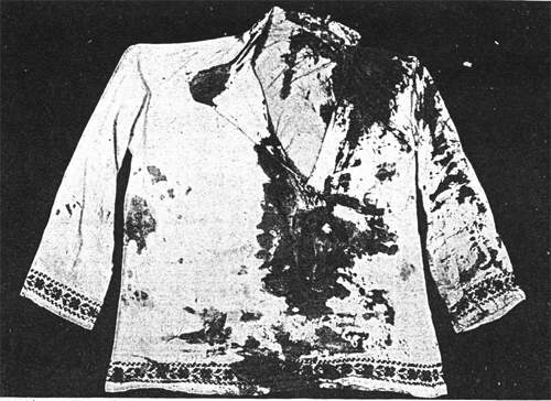 «Вероятно, наиболее ценный вклад в защиту Бейлиса внес доклад трех британских ученых. Доктора Огастес Дж. Пеппер, Уильям Генри Уилкокс и Чарльз Артур Мерсье утверждали: нанесенные убийцами раны были не такого типа, чтобы вызвать обильное внешнее кровотечение. Если бы целью убийства было подобное кровотечение, было бы использовано иное орудие. Убийца, который хотел выкачать из тела кровь и собрать ее в сосуд, вряд ли бы выбрал шило, способное наносить лишь колотые раны. Самое подходящее орудие в таком случае — нож, которым легко вскрыть вену или артерию. (В конце концов, заметили они, такой метод хорошо знаком евреям: еврейский забойщик скота, шохет, перерезает сосуды на шее животного остро заточенным ножом.) Представляется едва ли возможным, чтобы мальчика убили ради собирания крови, заключили ученые. Преступление походило скорее на жестокое, зверское убийство, совершенное психически неуравновешенным человеком».