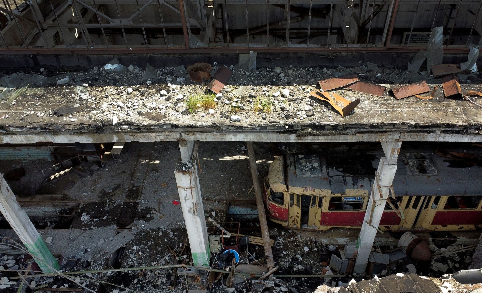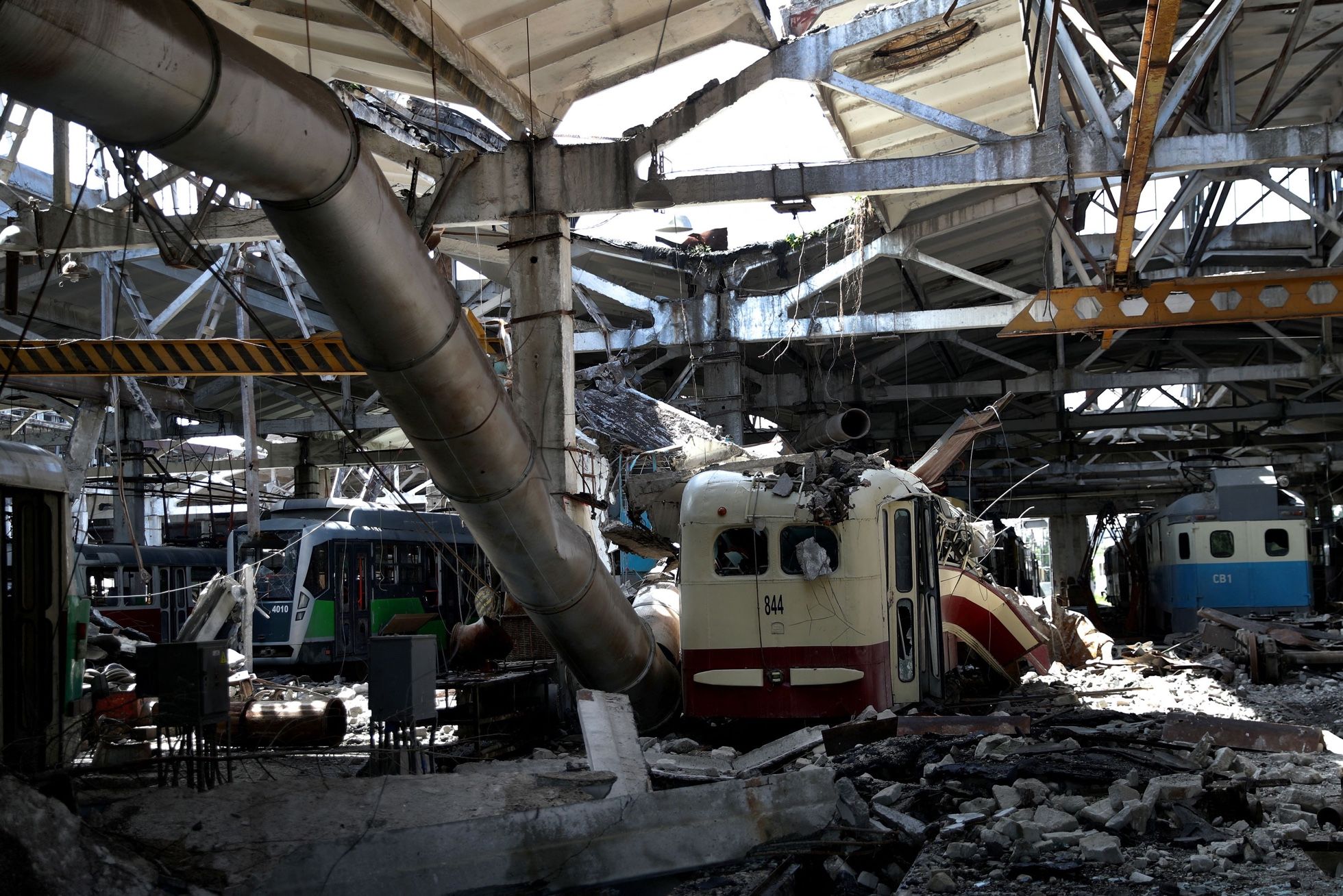 Обстрелянное трамвайное депо в Харькове, 15 июня