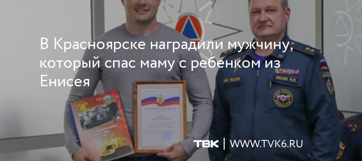 В Красноярске наградили мужчину, который спас маму с ребенком из Енисея