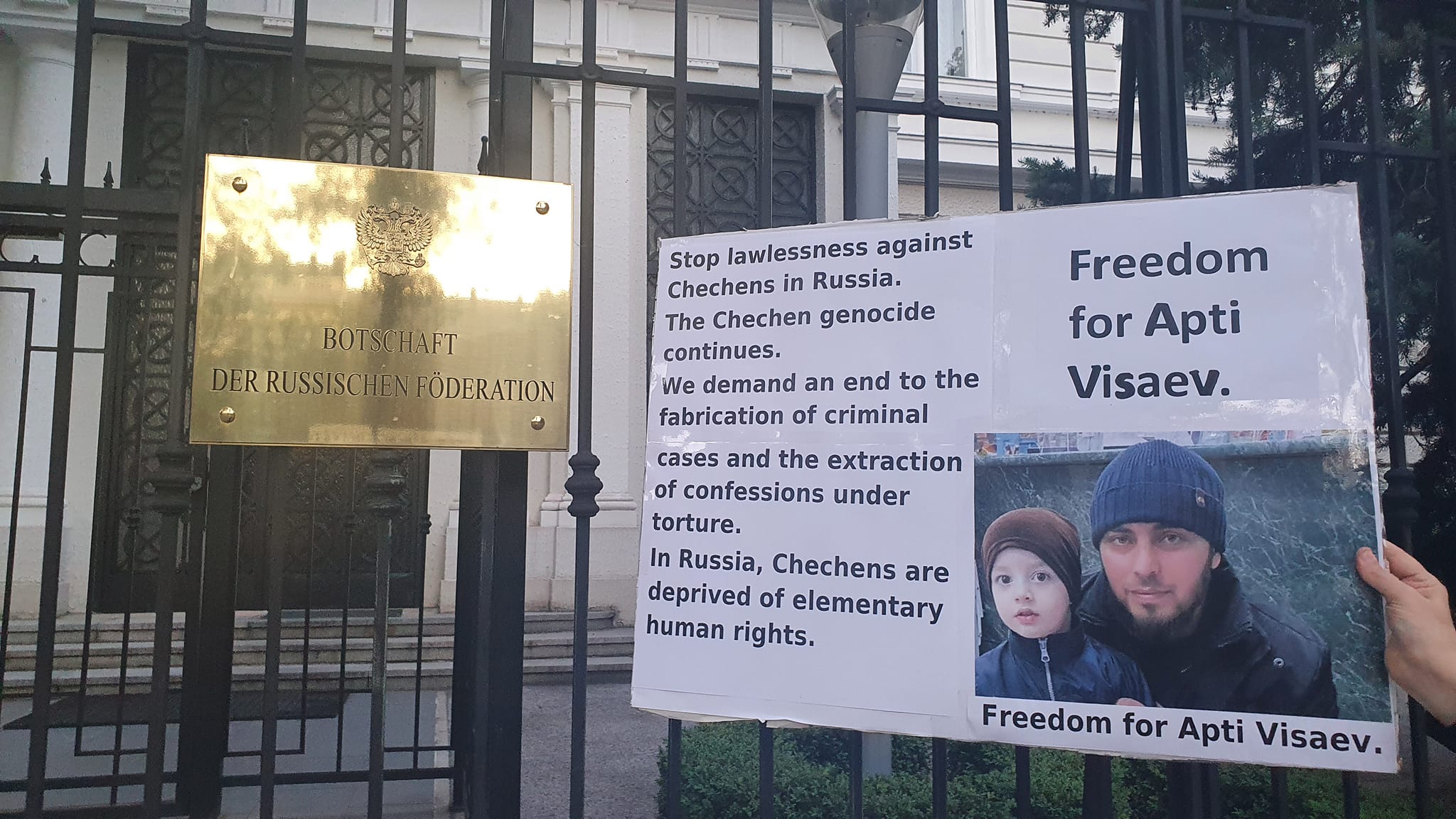 В Вене у посольства России состоялся пикет с требованием прекратить преследование чеченца Апти Висаева, которого в России обвинили в подготовке теракта и незаконном хранении взрывчатых веществ. По утверждению правозащитников, его уголовное преследование незаконно.