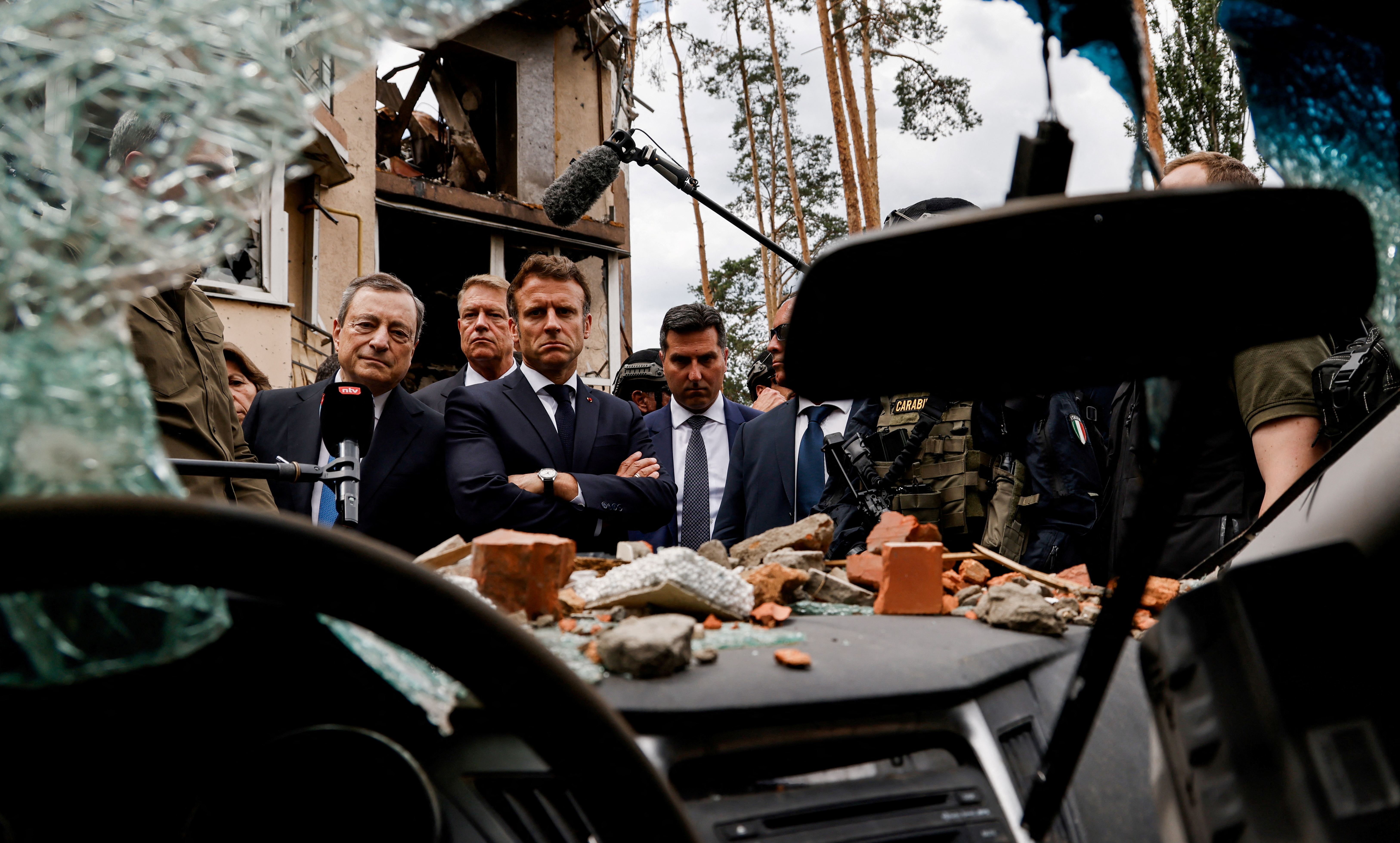 Президент Франции Эмманюэль Макрон, канцлер Германии Олаф Шольц, премьер-министр Италии Марио Драги и президент Румынии Клаус Иоганнис прибыли в Ирпень в Киевскую область, сообщает агентство Reuters.