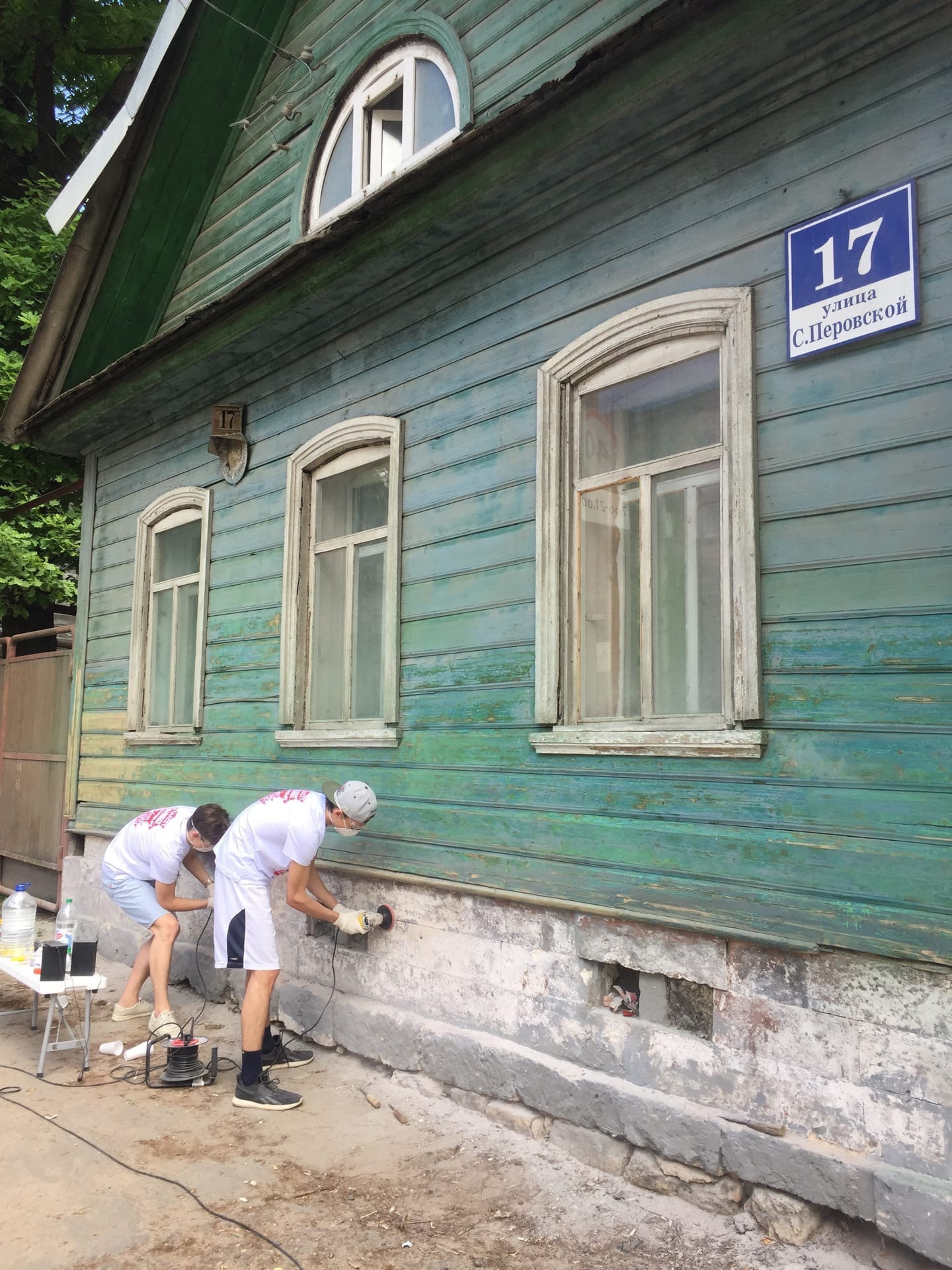 За сегодняшний день мы успели еще больше продвинуться к цели по очистке цоколя от старой краски. Мы подготовили леса к монтажу на следующей неделе. А еще ряды нашей команды пополнились двумя новыми волонтерами. Никита и Илья, вы — большие молодцы, ждем вас на площадке снова и снова.