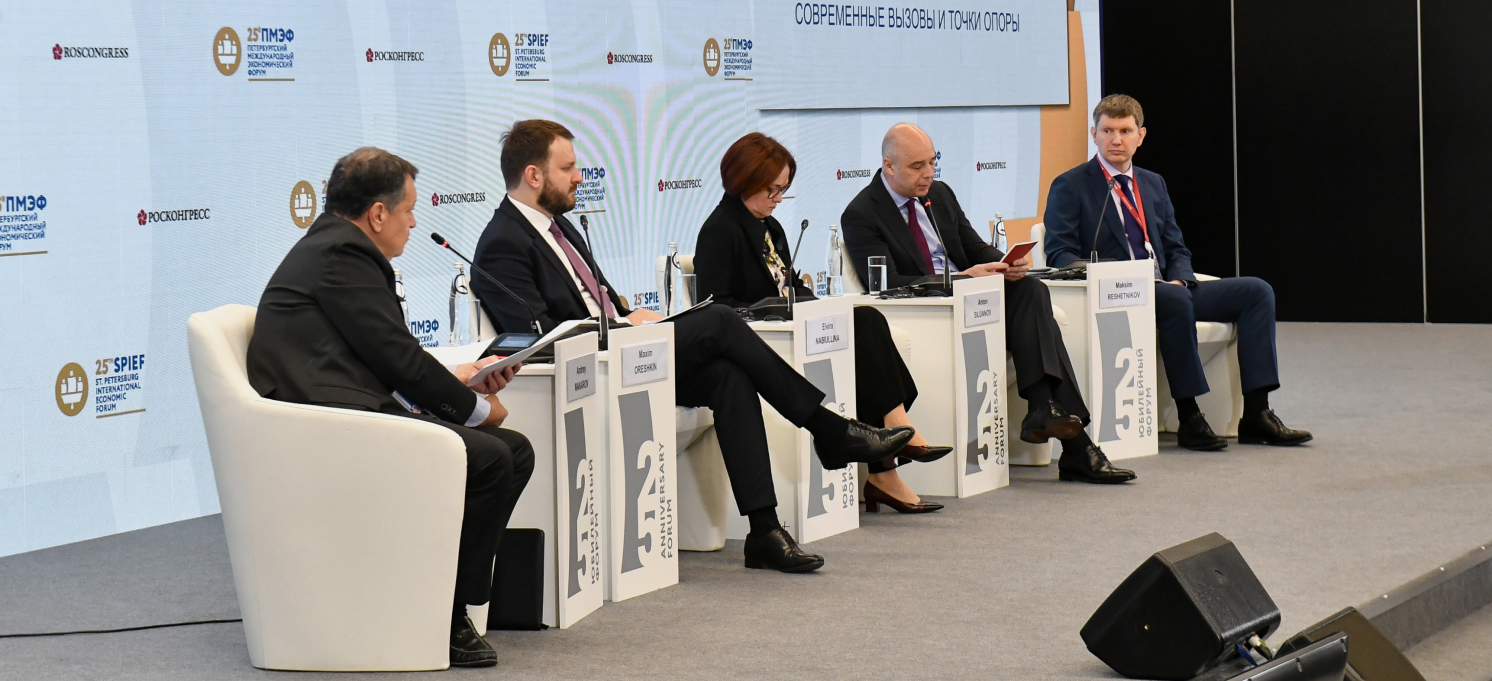 Первая крупная сессия нынешнего Петербургского форума, посвященная «современным вызовам и точкам опоры» российской экономики, оказалась не слишком информативной, зато эмоциональной. Содержательнее всех выступила Эльвира Набиуллина, поддержавшая снятие ограничений на движение капитала и сокращение российского экспорта. Остальные участники сессии — Максим Орешкин, Антон Силуанов и Максим Решетников — обсуждали, почему «как раньше уже не будет», держались бодро и много шутили. Рассказываем, что было на главной сессии питерского форума об экономике.