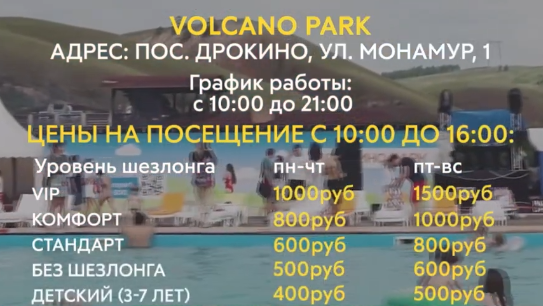 Администрация предлагает 4 уровня билетов: от VIP до самого бюджетного, куда не входит шезлонг. После 16:00 вход обойдется на 200 рублей дешевле. Детям до 3 лет посещение бесплатно.