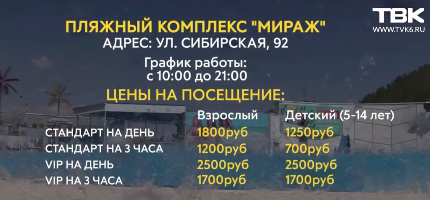 Пляжный комплекс «Мираж» в Бобровом логу (ул. Сибирская, 92)