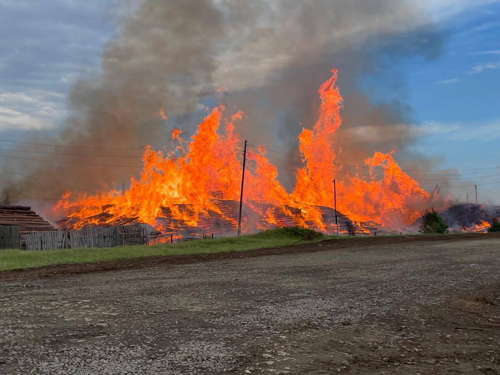 В Красноярском крае загорелась лесопилка: на месте работает полиция и противопожарный поезд