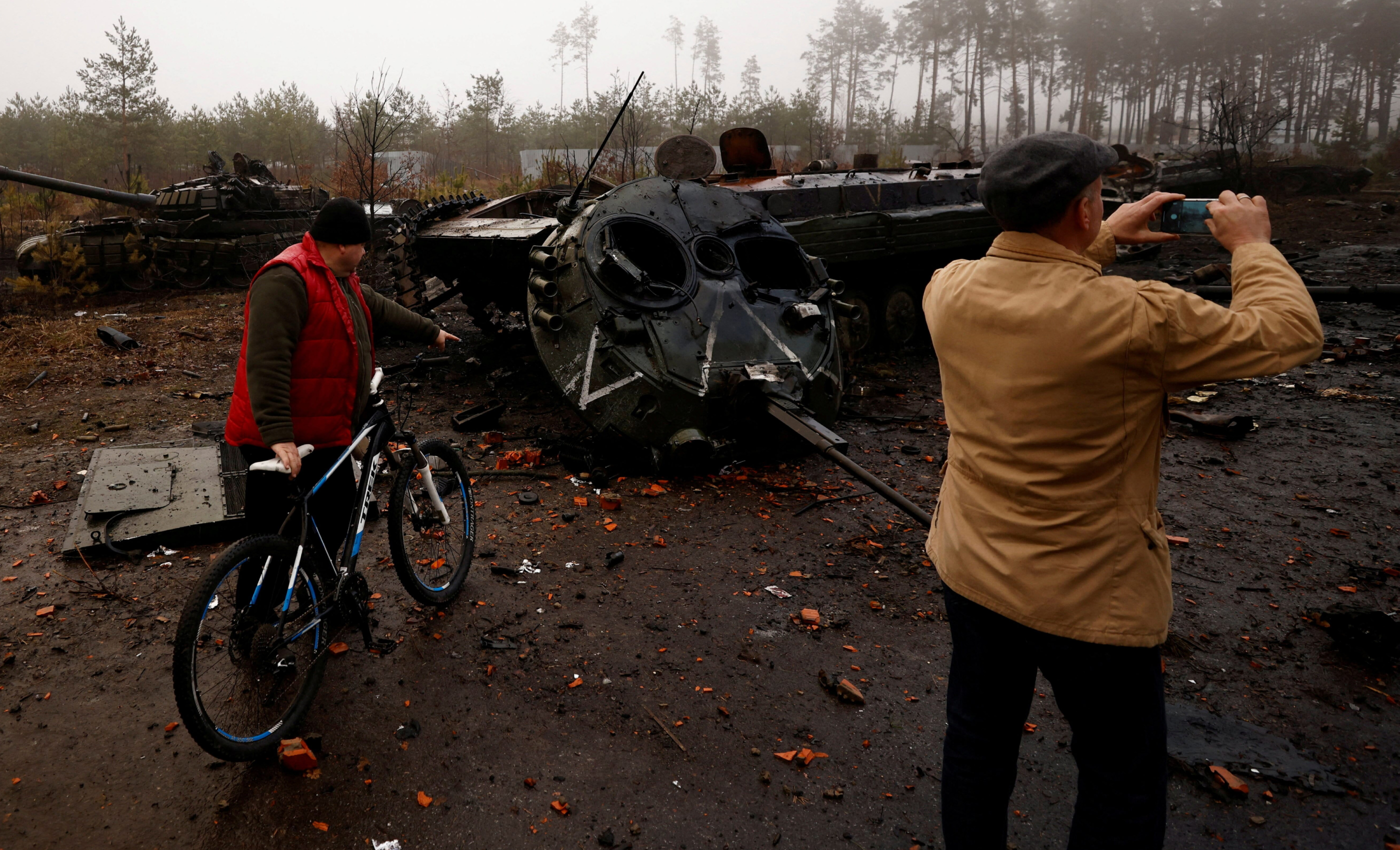 Подорванный танк в селе Дмитровка, 1 апреля 2022 года. Фото: Zohra Bensemra / Reuters