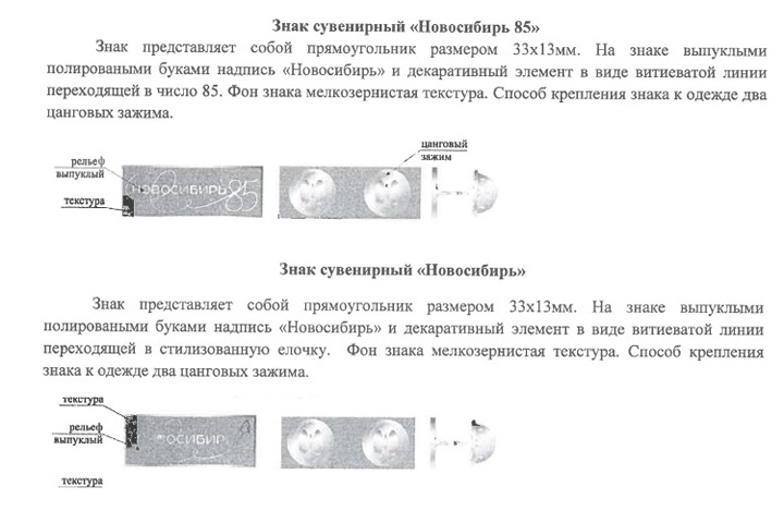 Правительству понадобились прямоугольные знаки, на которых «выпуклыми полированными буквами» будут надписи «Новосибирь 85» и «Новосибирь». Каждый значок оценивается в 302 рубля.