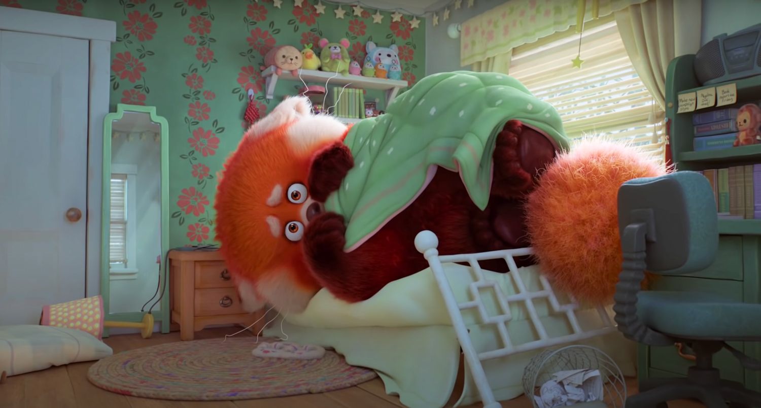 Любопытно, что романтическая составляющая, когда-то казавшаяся обязательной для анимации Disney (по меньшей мере если мультфильм «про девочек»), здесь не то чтобы исчезает, а уходит на второй план. Разумеется, пубертат — это пробуждение сексуальности, и симпатии Мэй Ли пропорционально делятся между симпатичным пареньком с соседней улицы и недоступным солистом 4'Town. Но при этом ядро конфликта — не история любви, а взаимоотношения героини с подругами, не одаренными волшебным талантом, властной матерью и еще более деспотичной бабушкой, которую боится даже мать.