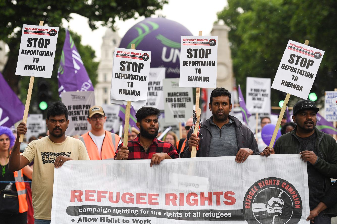 В Великобритании план правительства вызвал многочисленные протесты. Против него выступили правозащитники, благотворительные организации, профсоюзы, некоторые политики и англиканская церковь.