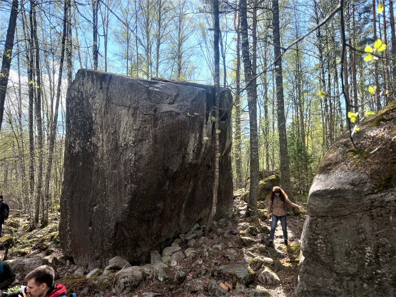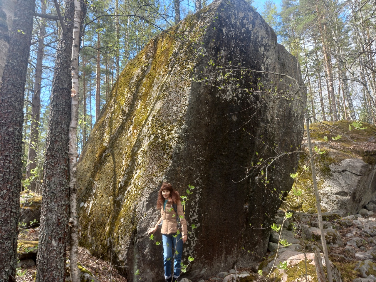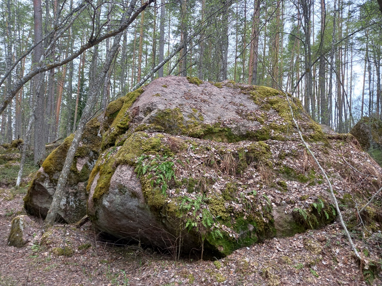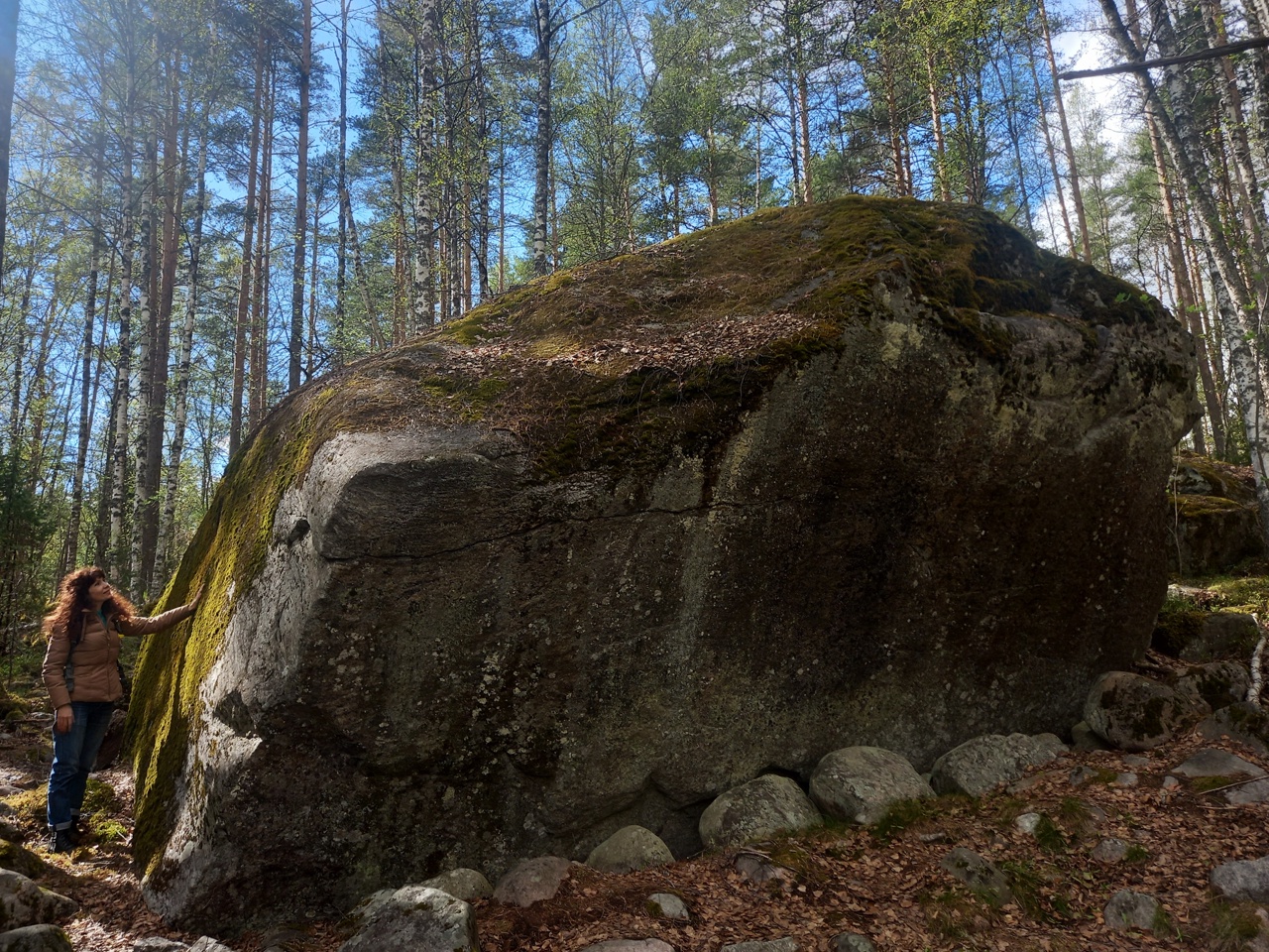 Идем обратно. По дороге нам тоже встречаются огромные валуны, застрявшие когда-то в лесу. Сюда их принес ледник.