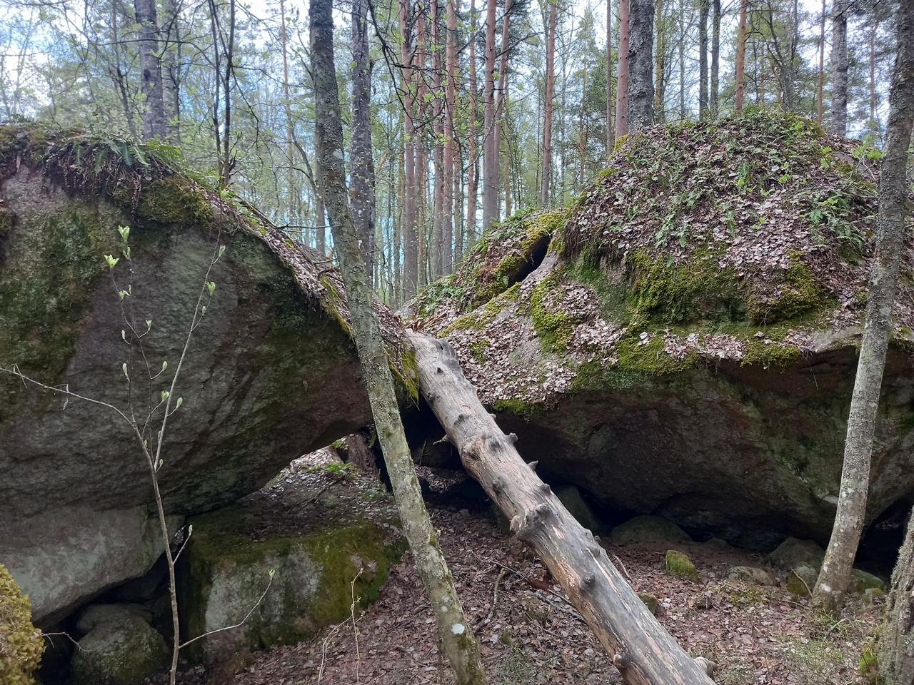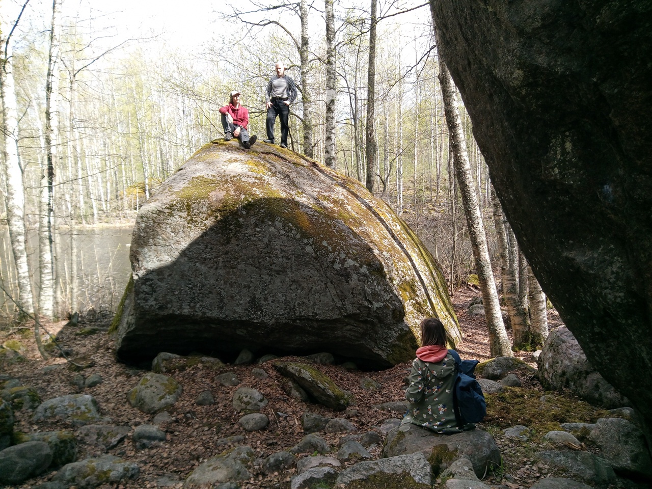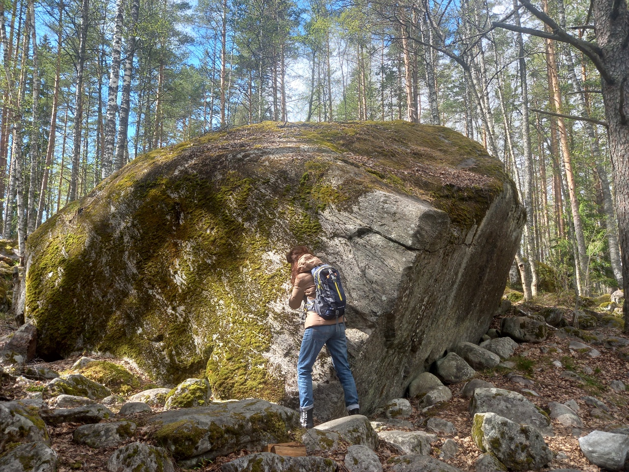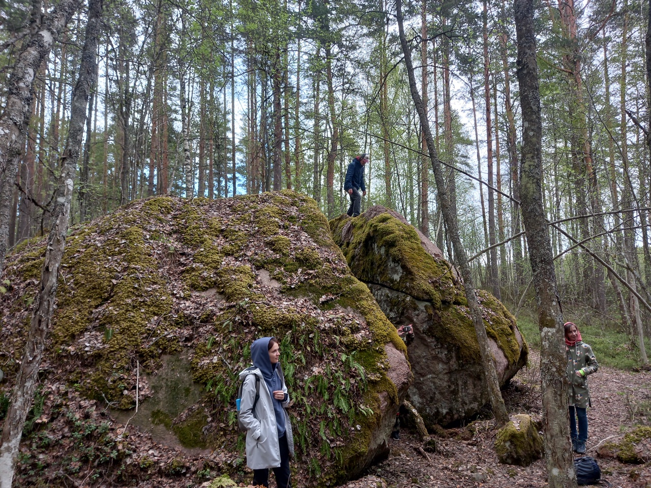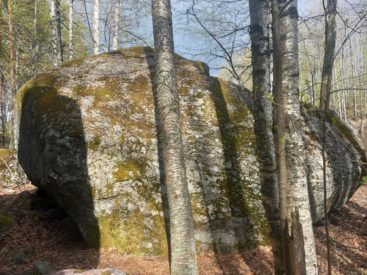 Идем обратно. По дороге нам тоже встречаются огромные валуны, застрявшие когда-то в лесу. Сюда их принес ледник.
