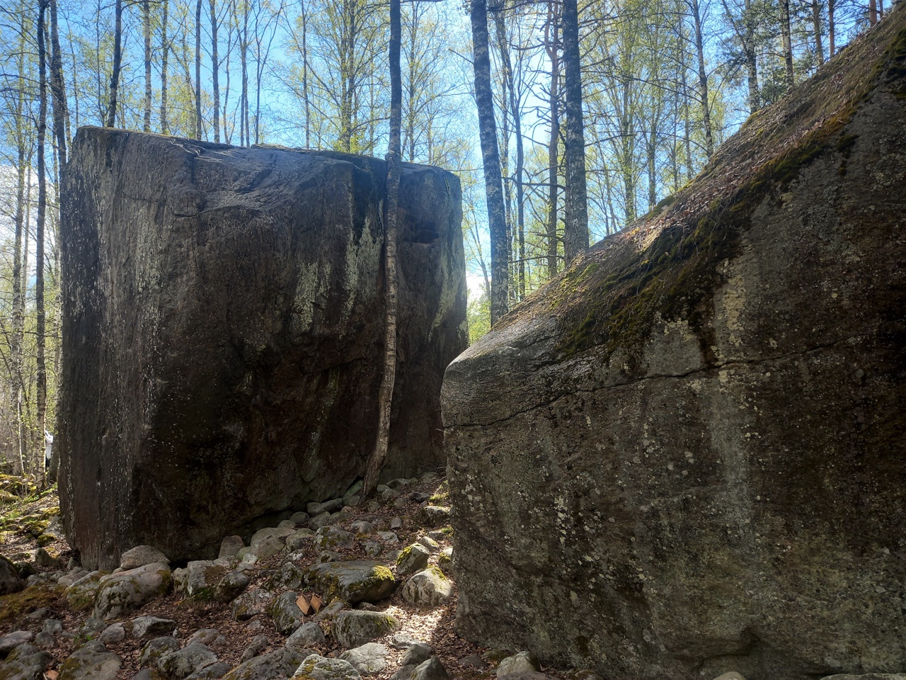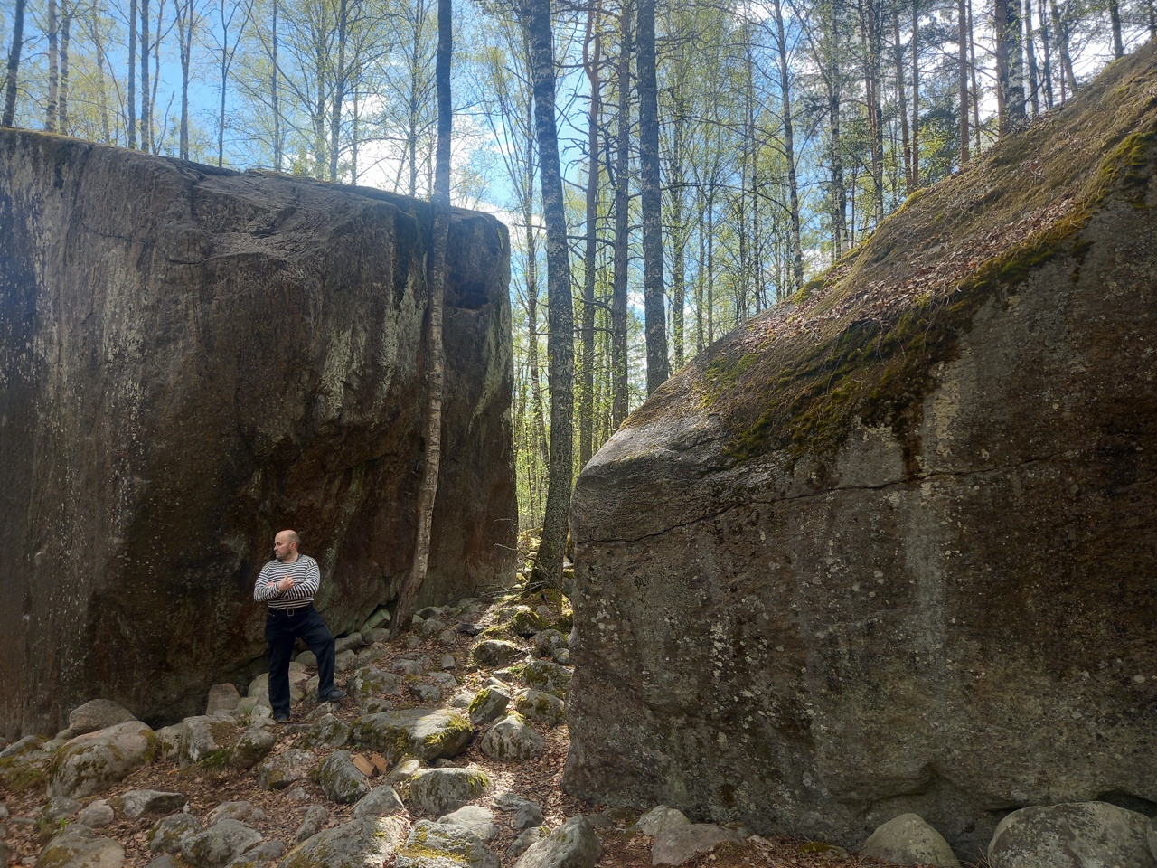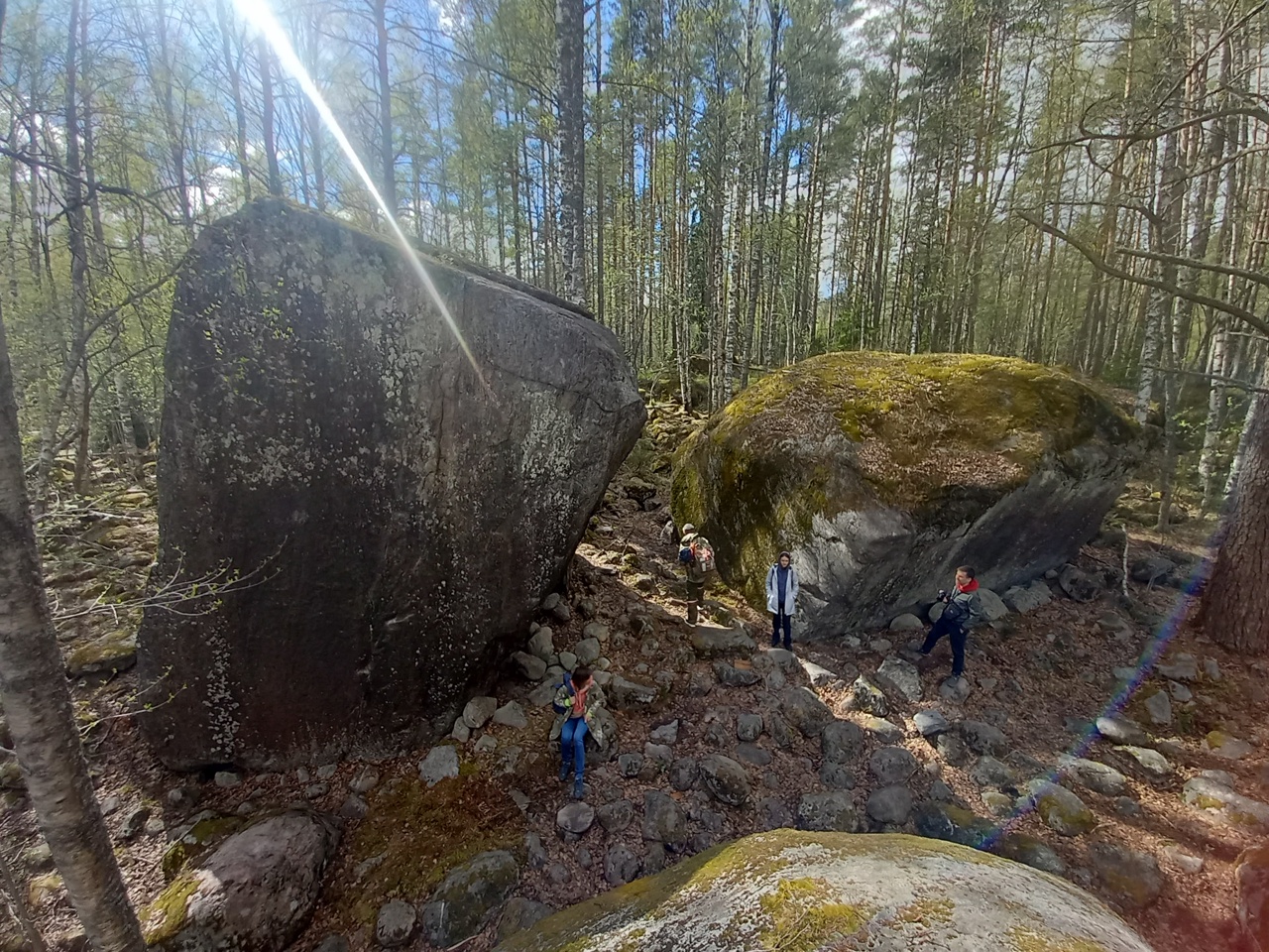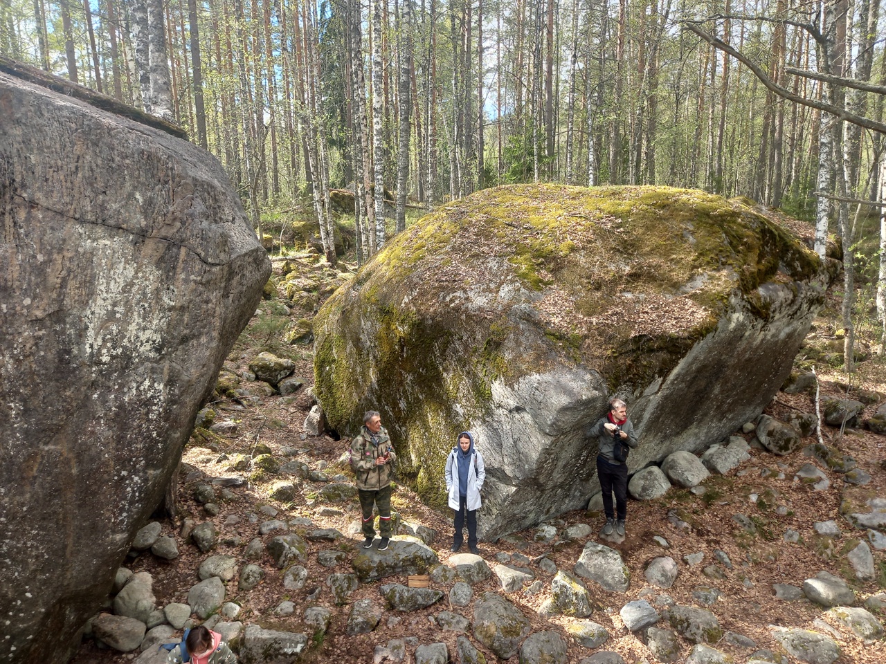Идем обратно. По дороге нам тоже встречаются огромные валуны, застрявшие когда-то в лесу. Сюда их принес ледник.