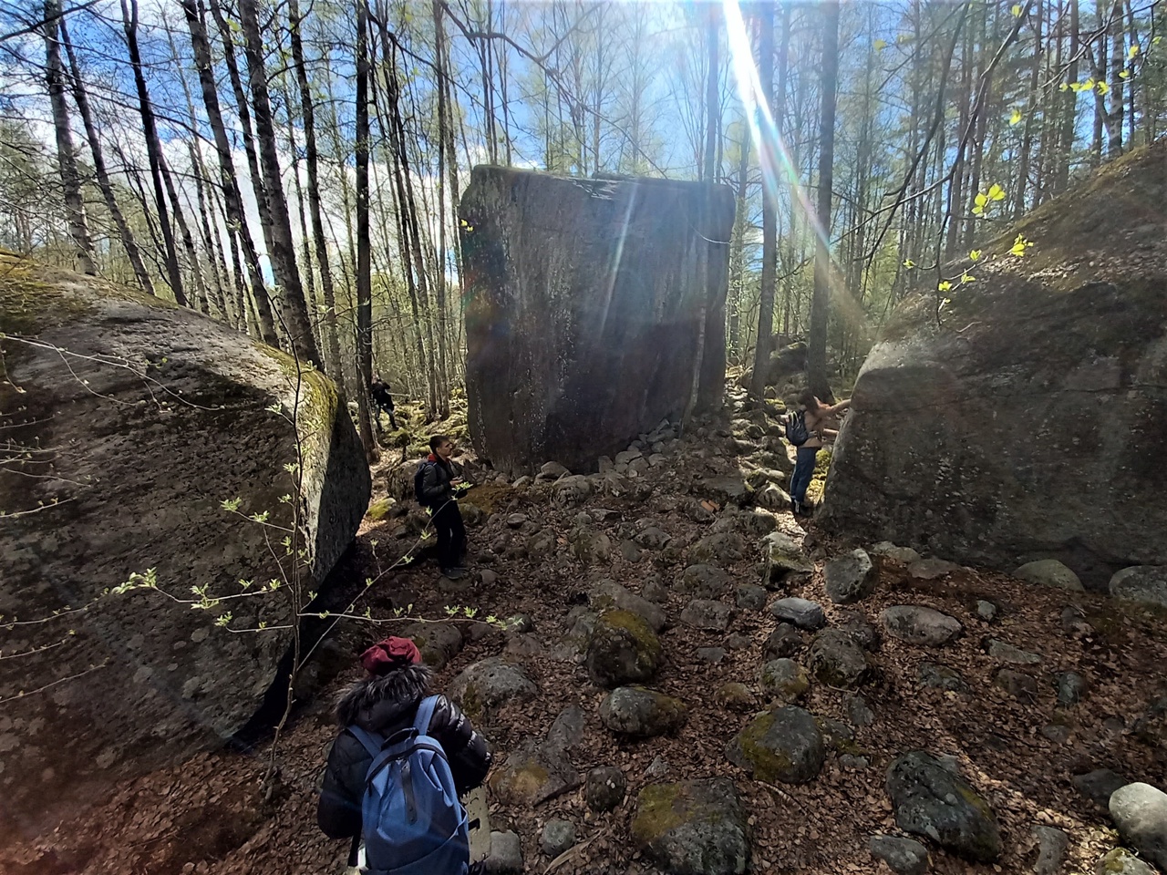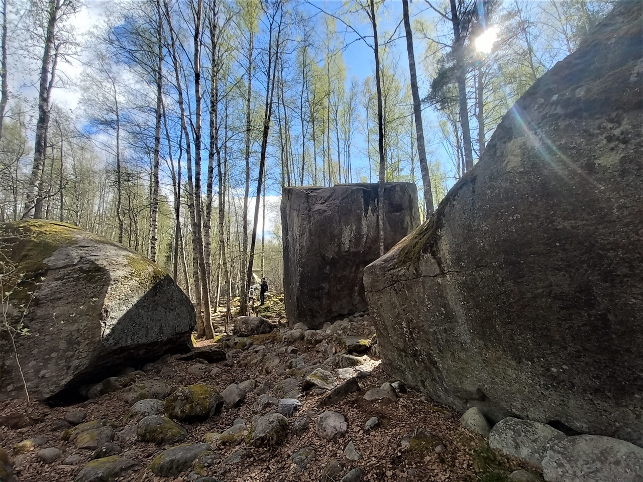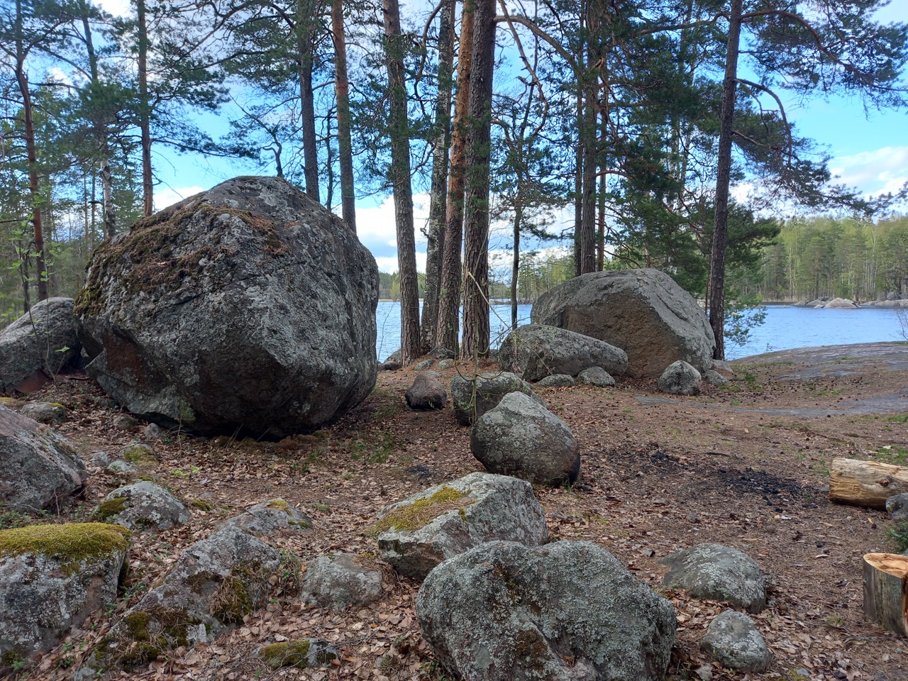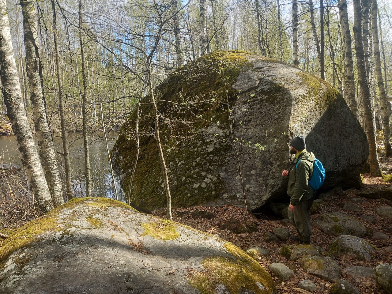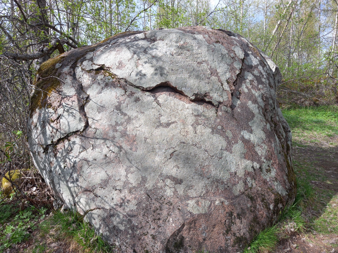 Идем обратно. По дороге нам тоже встречаются огромные валуны, застрявшие когда-то в лесу. Сюда их принес ледник.