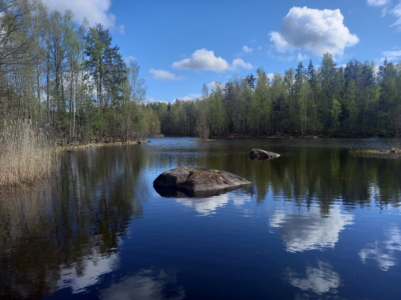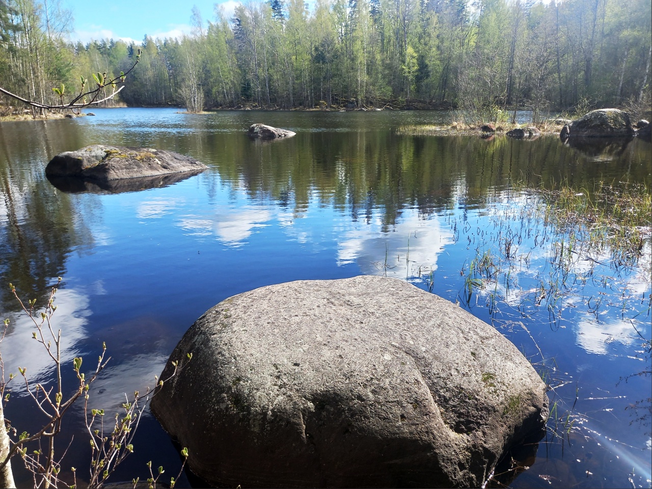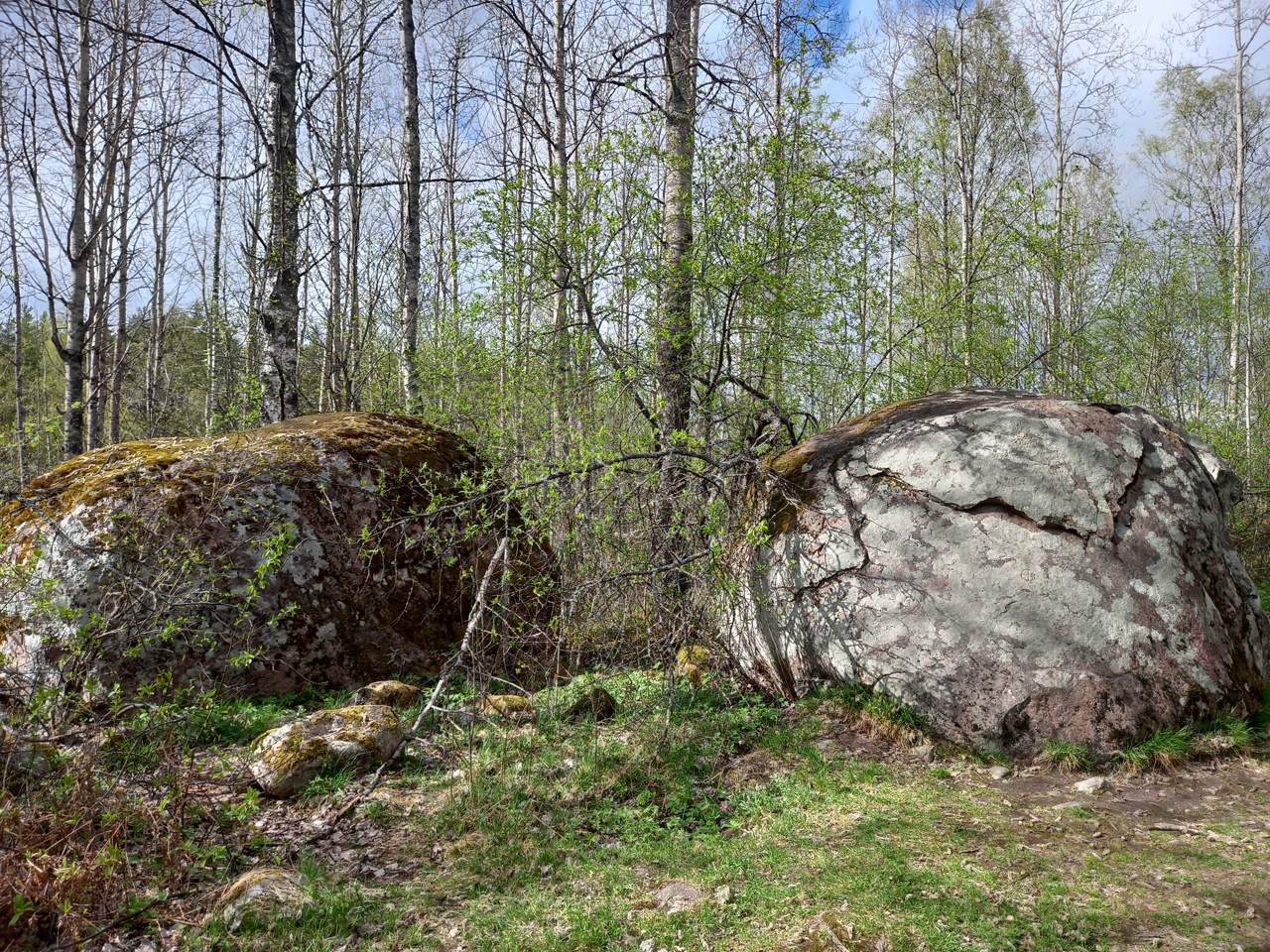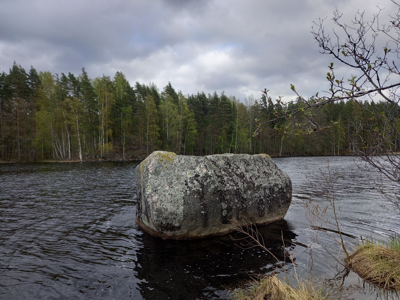 Идем обратно. По дороге нам тоже встречаются огромные валуны, застрявшие когда-то в лесу. Сюда их принес ледник.