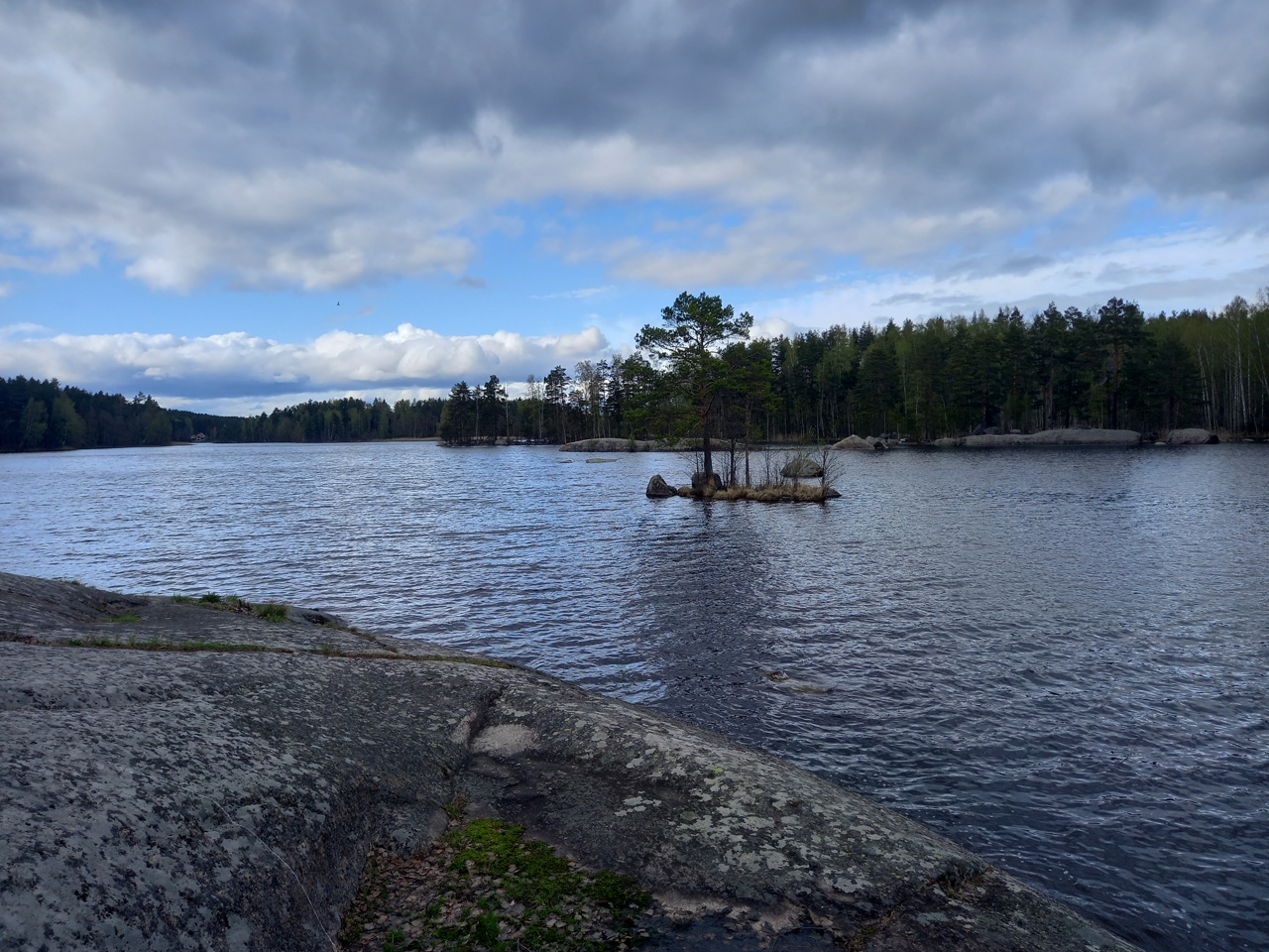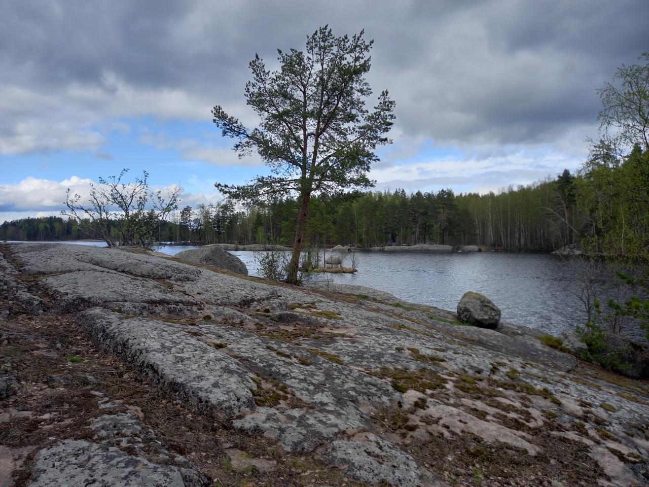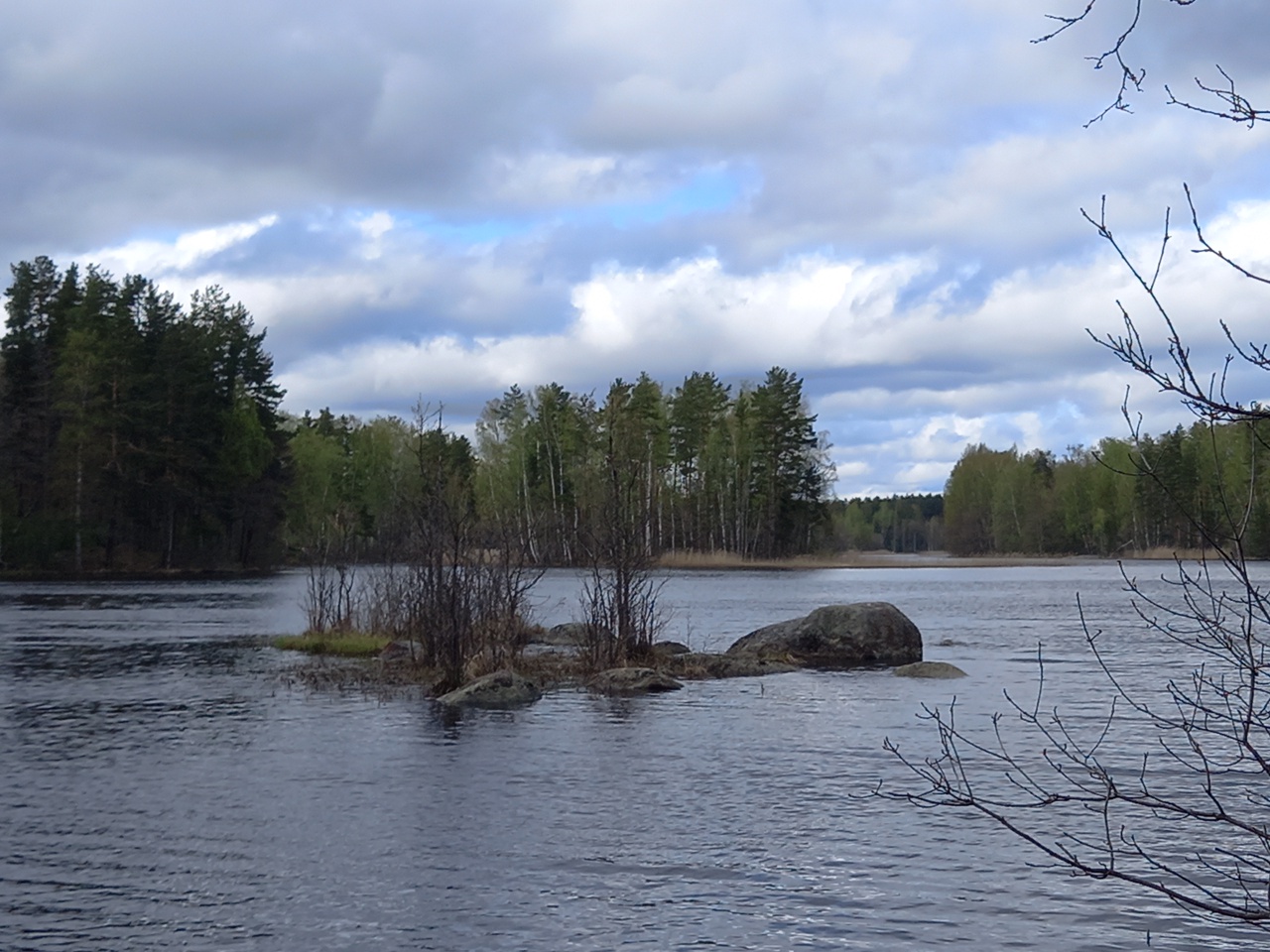 Возвращаемся к окраинам поселка Васильево. И по известной только мне дороге, которой еще нет на картах, идем к берегу Вуоксы, где я знаю очень красивое место. Его надо показать моим спутникам - потому что никто больше не покажет, потому что его - как и дороги - на карте нет. Нашел его когда-то случайно - почему-то зашел сюда изучить берег. Возможно, искал туристическую стоянку для отдыха, а нашел при этом хороший пейзаж. Итак, мы дошли до Вуоксы, а далее по берегу направо.